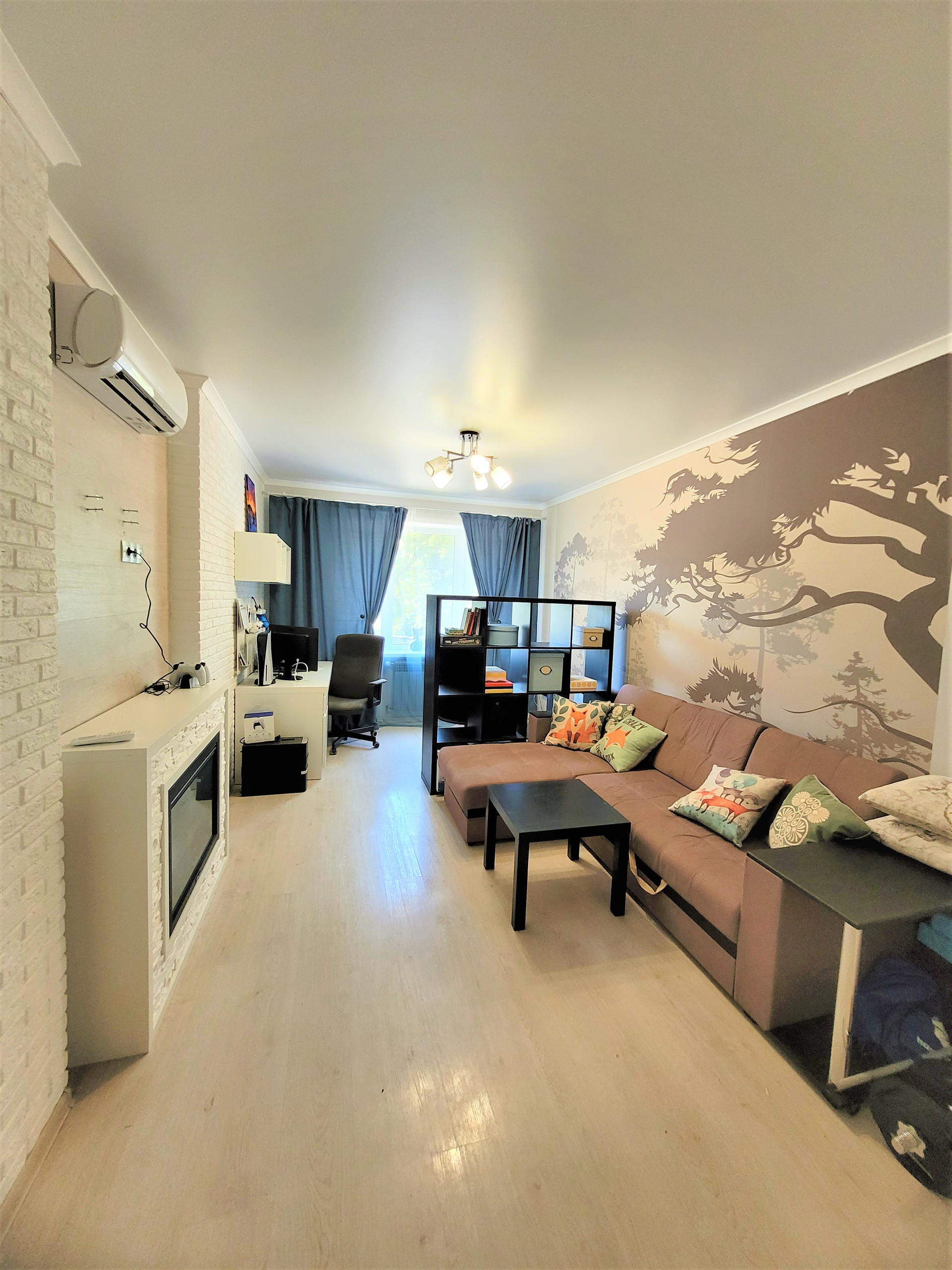 Квартира имеет продуманную планировку, благодаря евроремонту, жильё выглядит свежо и современно. Санузел совмещённый, просторный. Лоджия остеклена, под окнами тихо.