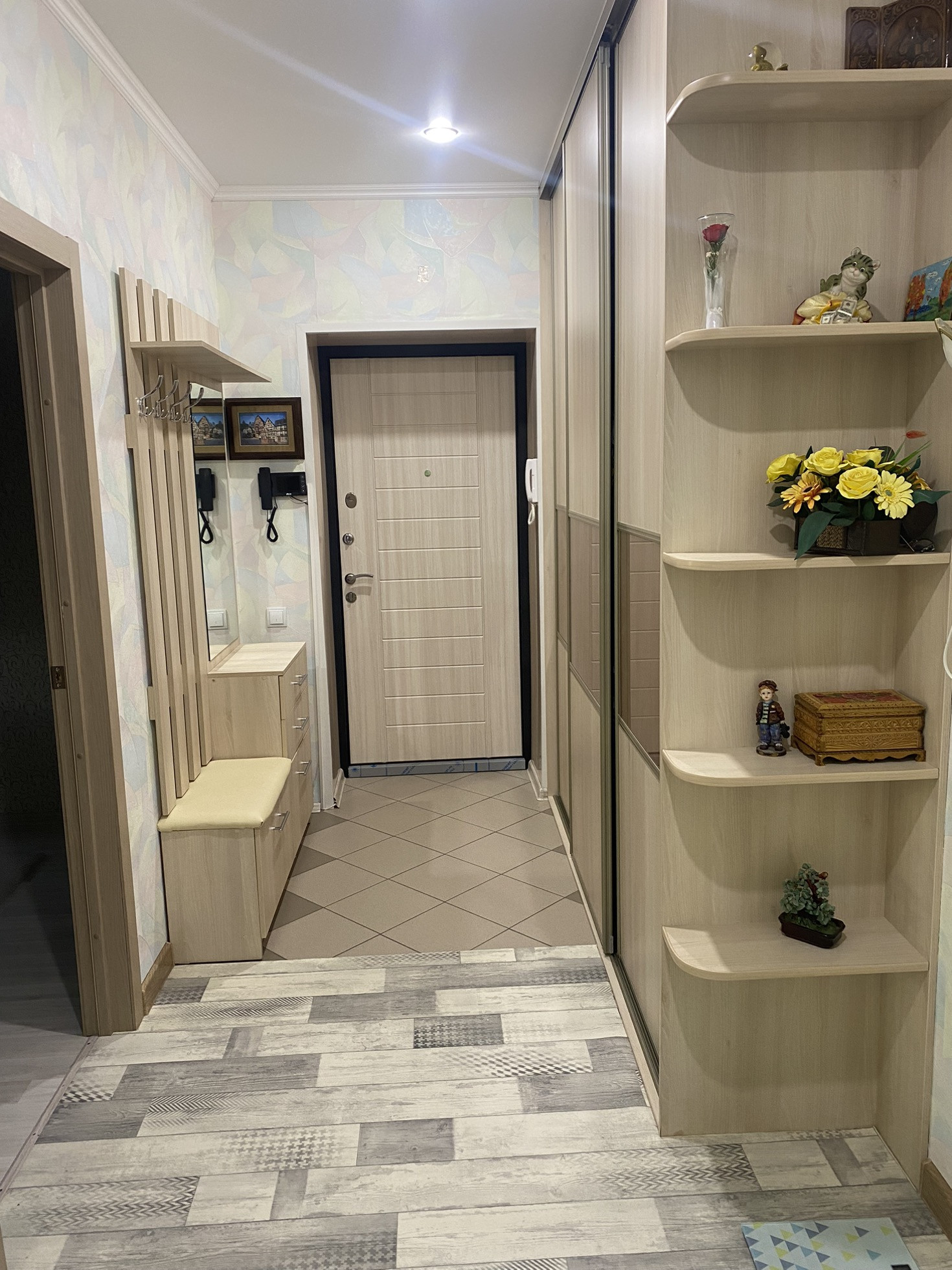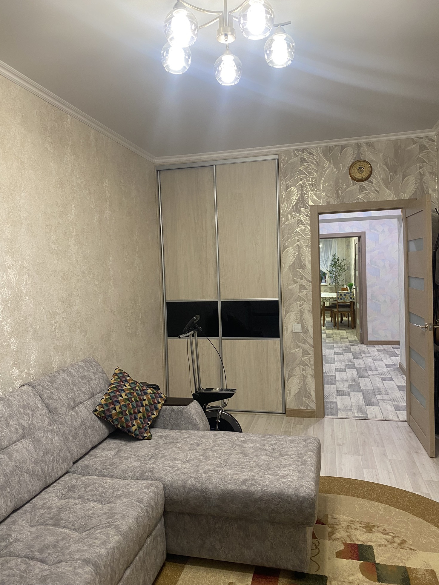 Квартира включает в себя две комнаты с жилой площадью 30.5 квадратных метров и просторную кухню площадью 13.5 квадратных метров с кухонным гарнитуром от «Марии». Из окон открывается прекрасный вид во двор и на поля НИИ. В квартире выполнен качественный евроремонт, благодаря которому она выглядит свежо и современно. Встроенные шкафы в коридоре и спальне от фирмы Командор. Санузел раздельный. Также имеется остекленная лоджия,которая выходит во двор.