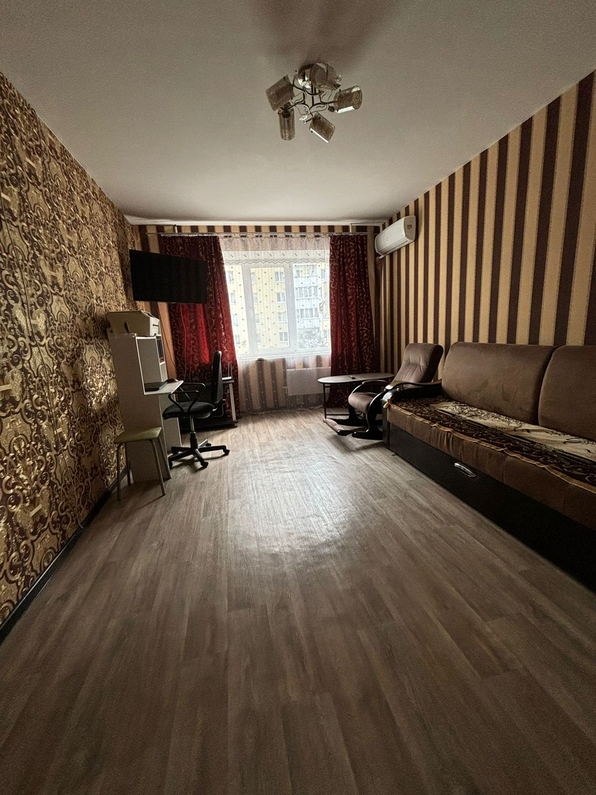 В квартире есть все необходимое для комфортного проживания. Сделан качественный евроремонт, установлена современная мебель и техника Электролюкс