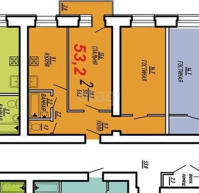 Общая площадь 50.8 м2
