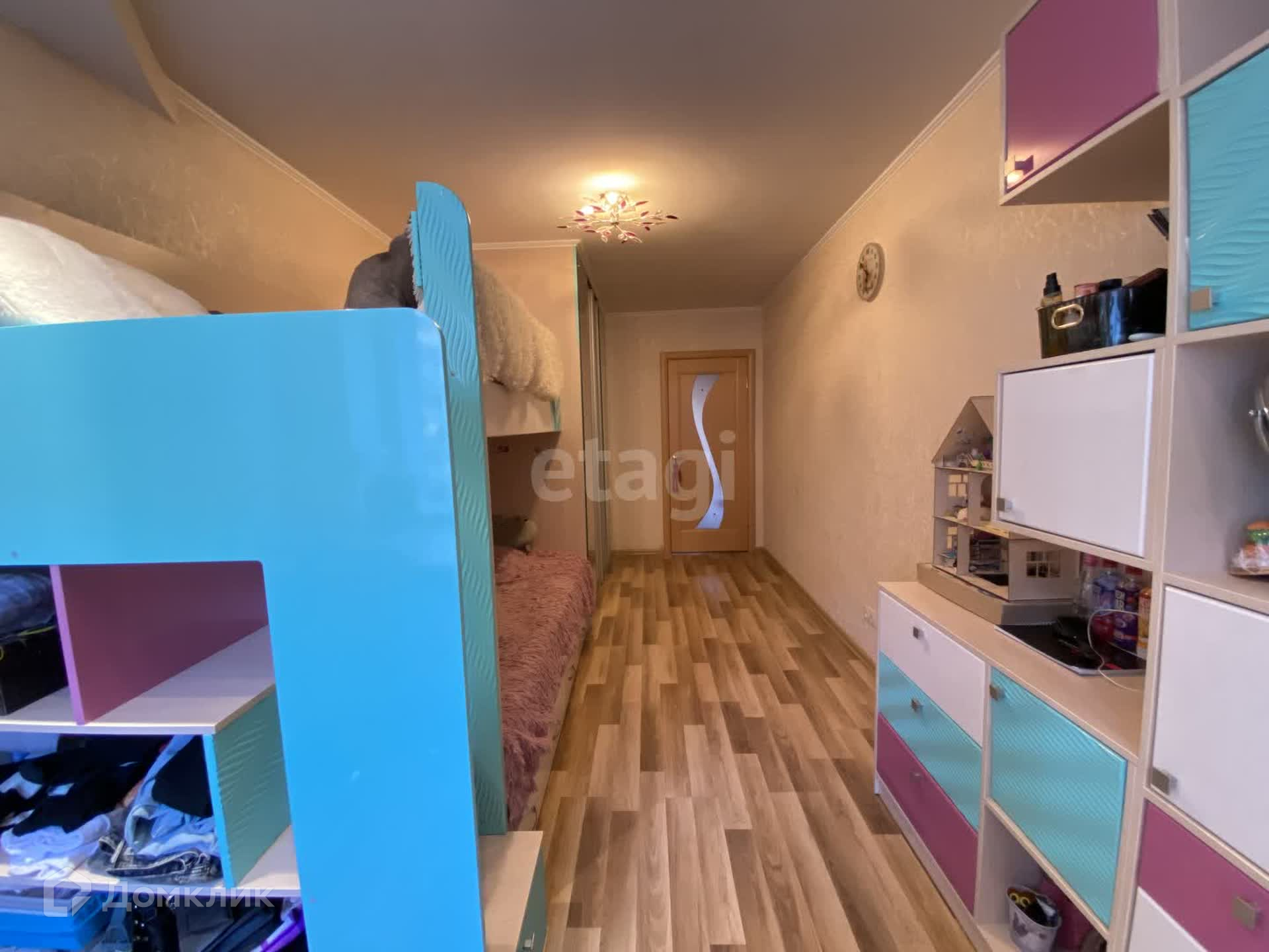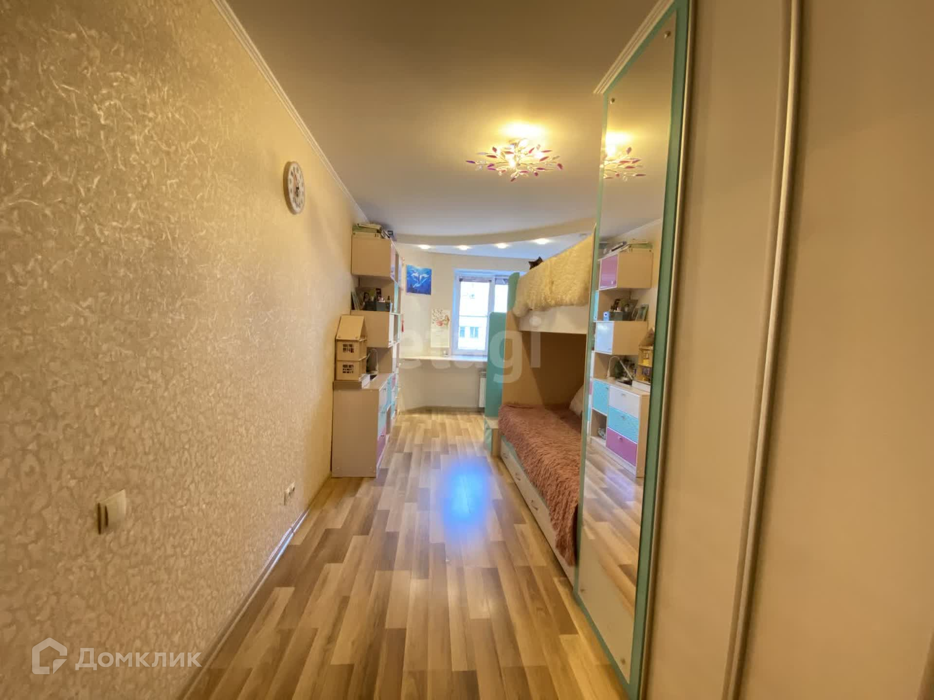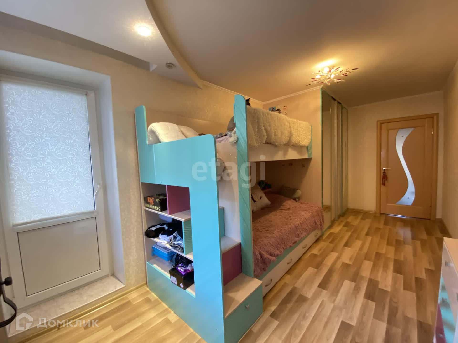 -2 спальня (детская)16 ,5 кв.м. имеет выход на застекленный балкон 4 кв.м. Здесь остаётся встроенный шкаф- гардеробная, двухъярусная кровать и шкафы с полками под книги.
