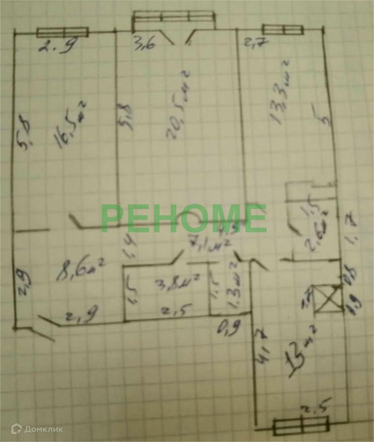 Жилая площадь 50.3 м2