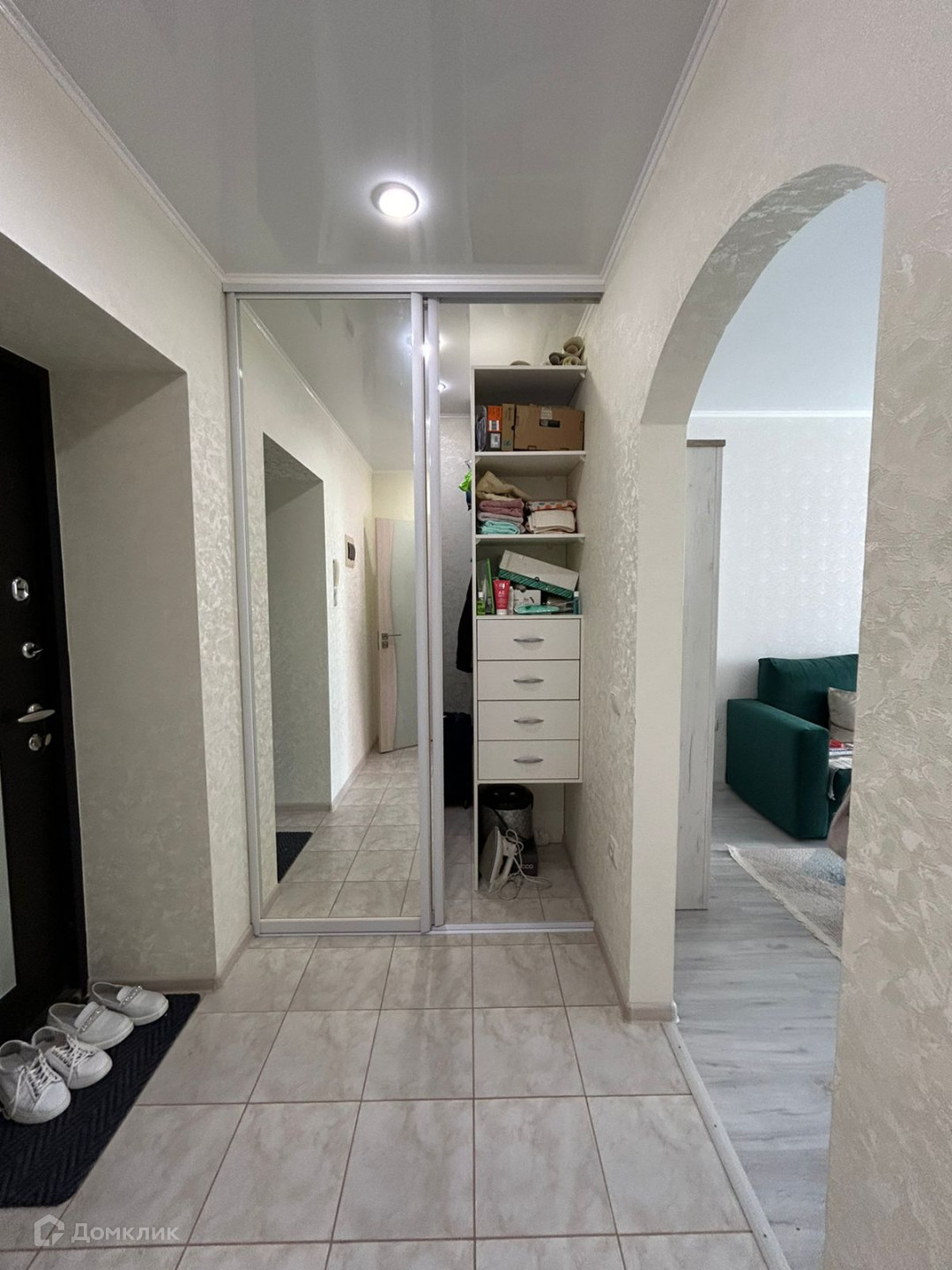 В прихожей гардеробная с зеркальными раздвижными дверями