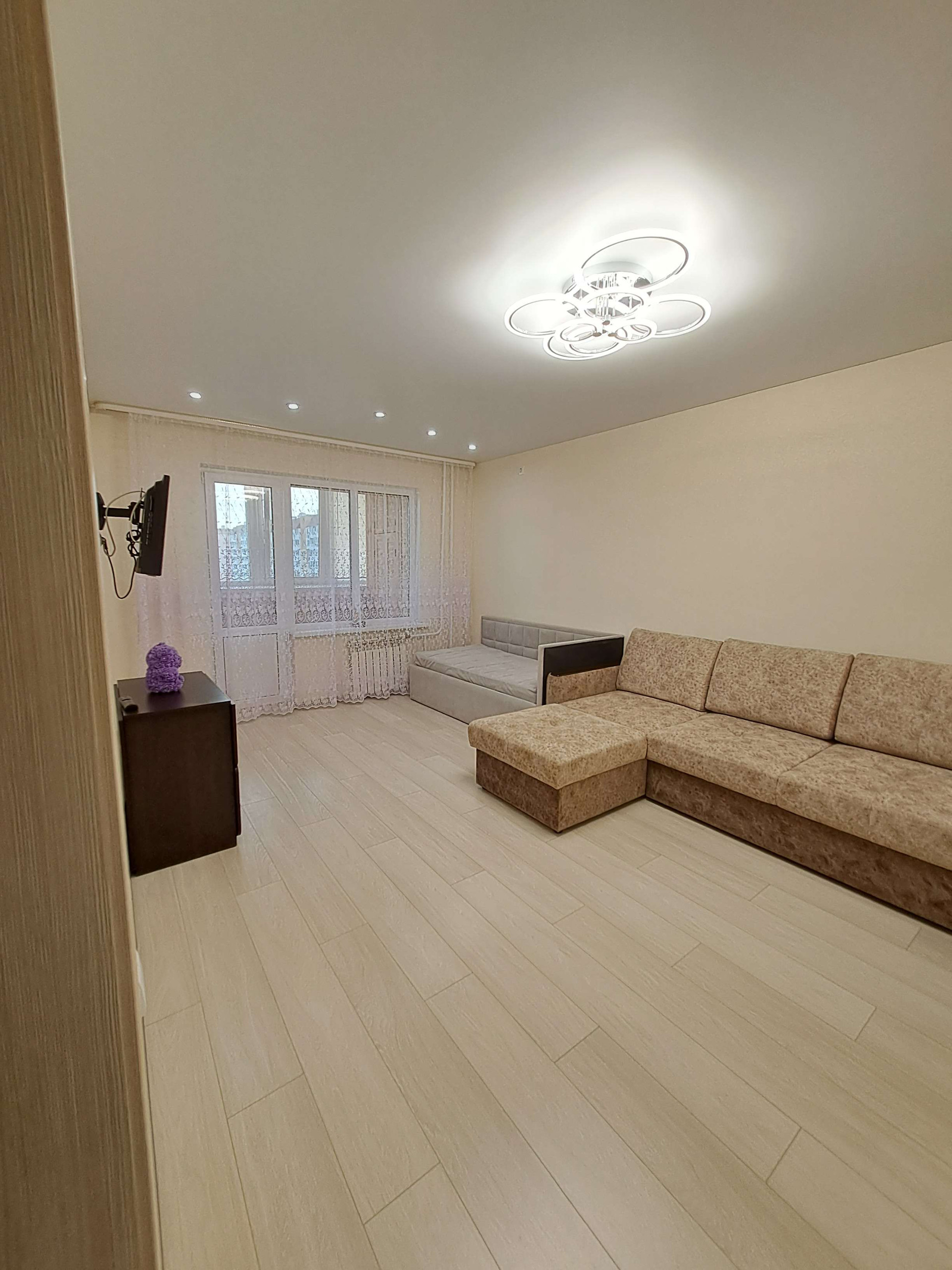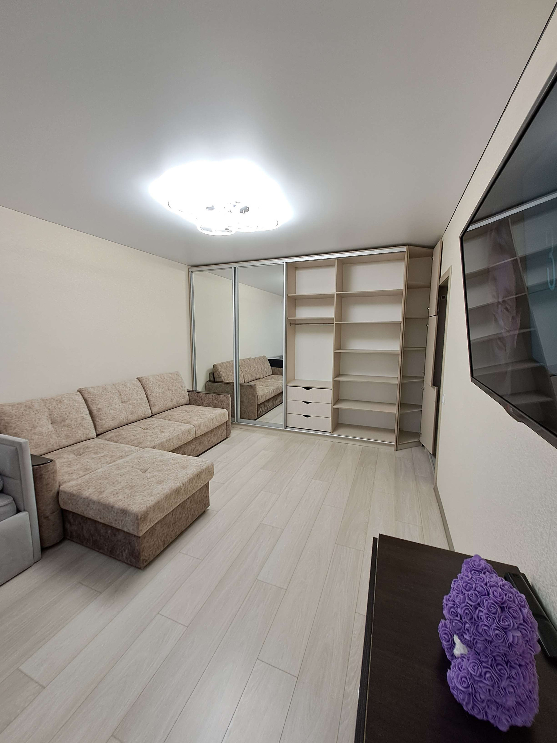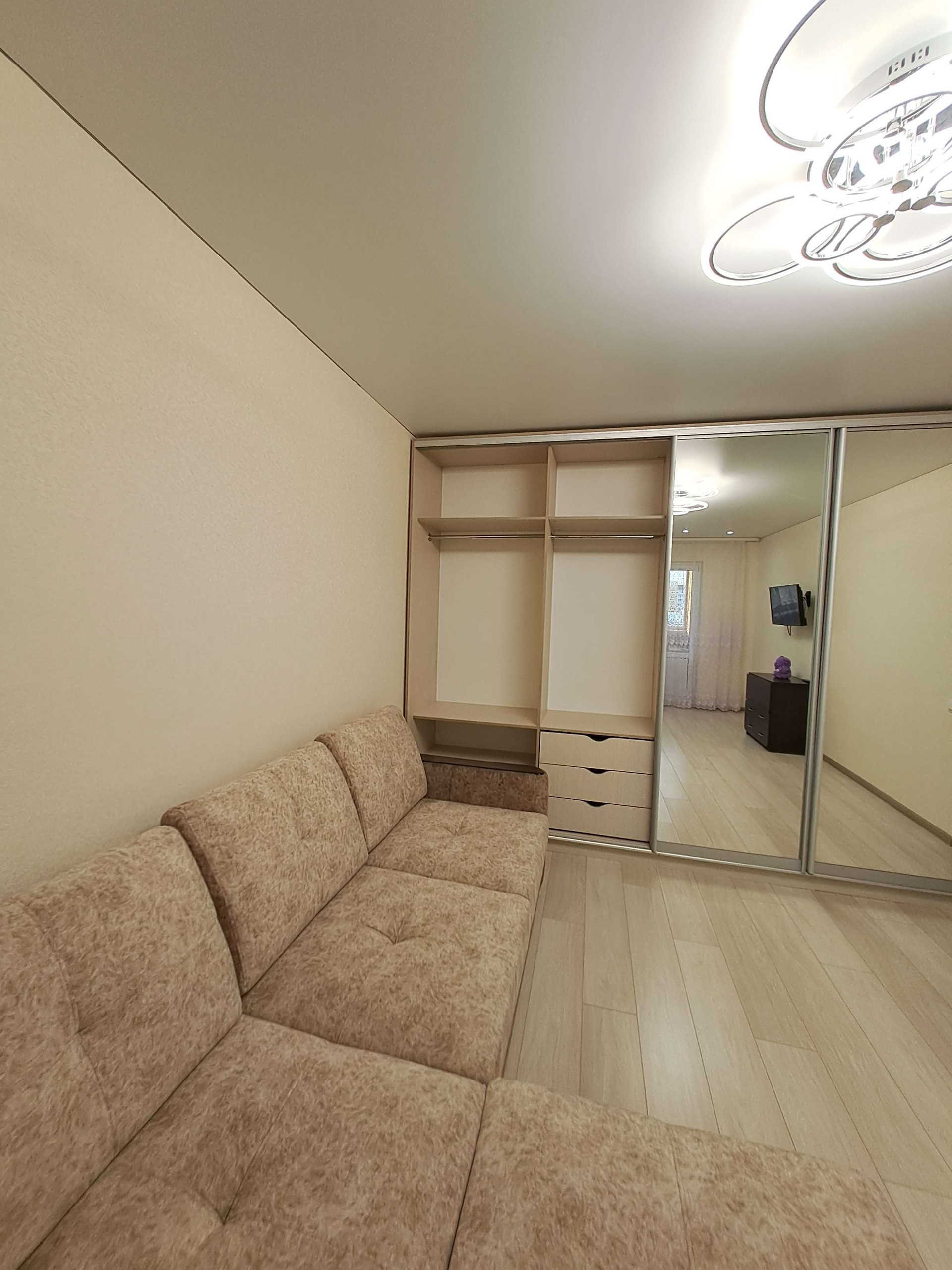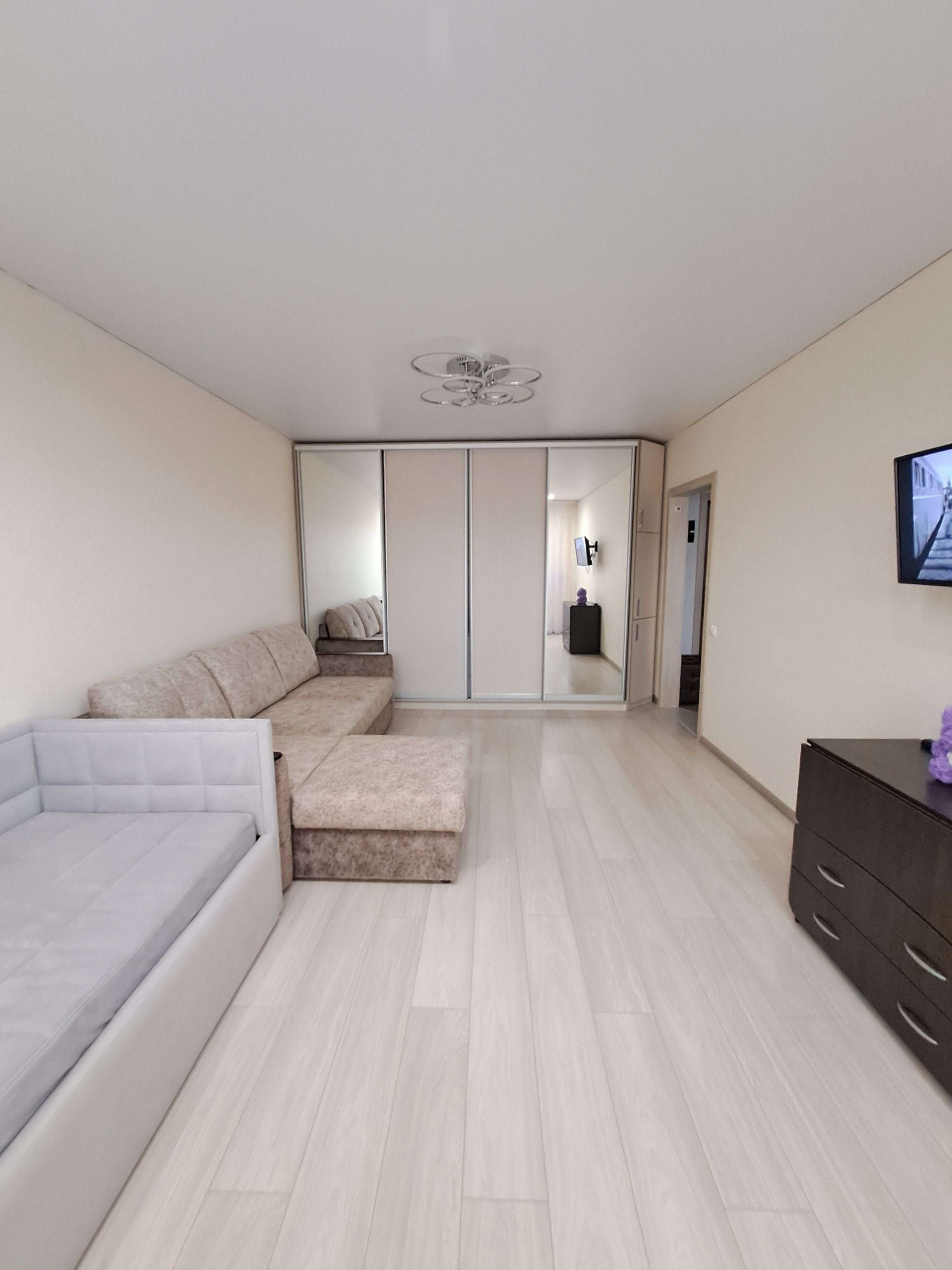 При продаже остается кухонный гарнитур с техникой (духовой шкаф Electrolux и варочная панель Lex, вытяжка), водонагреватель, новый встроенный шкаф в комнате, диван (за отдельную плату).