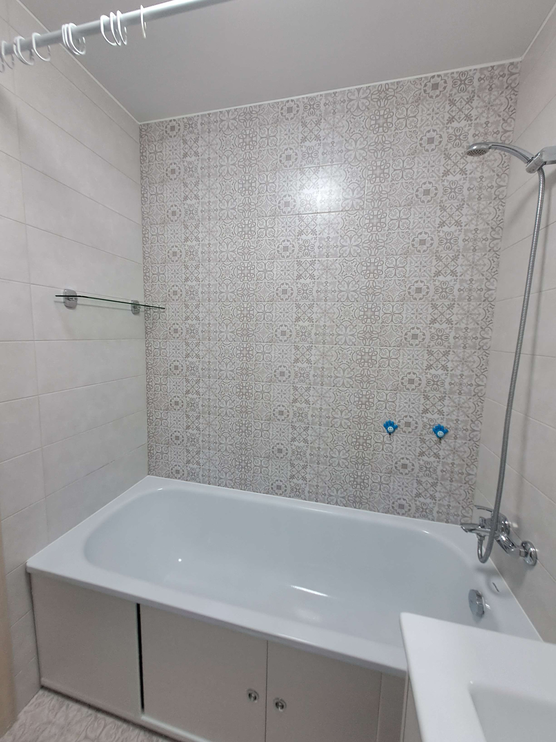 В квартире выполнен качественный ремонт (делали для себя), были сделаны стяжка пола, выравнивание стен, натяжные потолки, межкомнатные двери, все коммуникации- электрика и водоснабжение. Установлены счетчики на свет, воду и газ (в рабочем состоянии), качественная сантехника. На полах везде ламинат (33 класса), плитка в ванной комнате, туалете, на кухне частично и при входе в квартиру. Санузел раздельный.