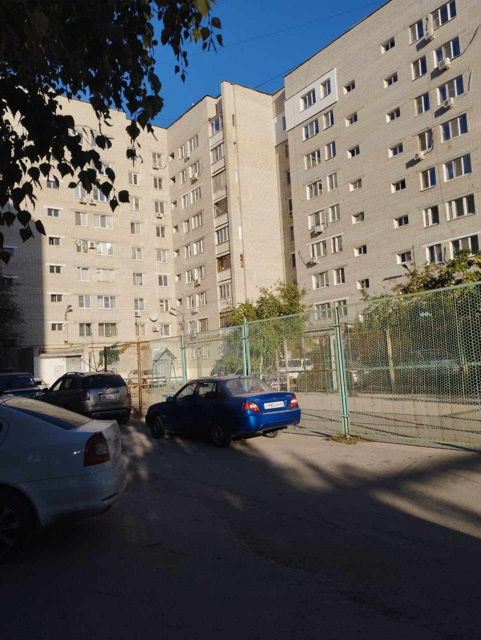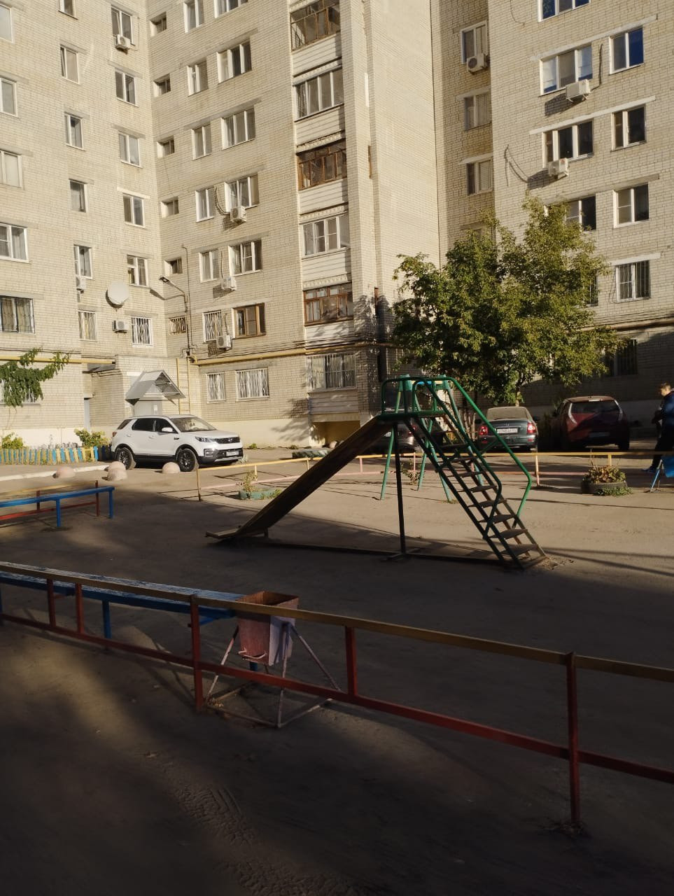 Во дворе большая парковка, детская площадка.
