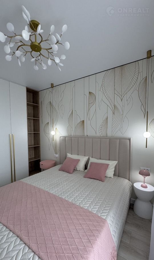 В спальне стильный шкаф с продуманной эргономикой