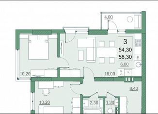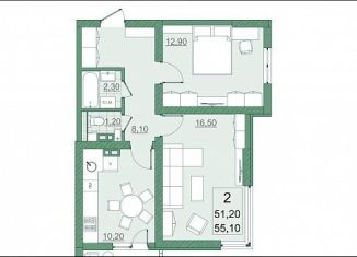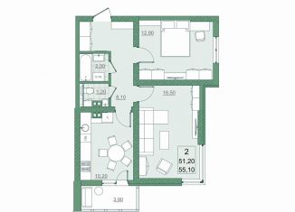 2-комнатная квартира на продажу, 55.1 м2, проспект Героев Отечества, 3