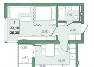 1-комнатная квартира на продажу, 33.1 м2, проспект Героев Отечества, 3