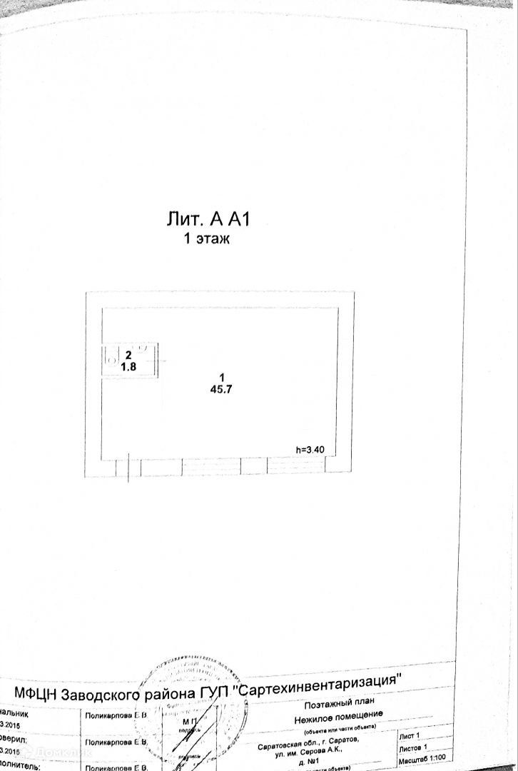 Общая площадь 45.8 м2