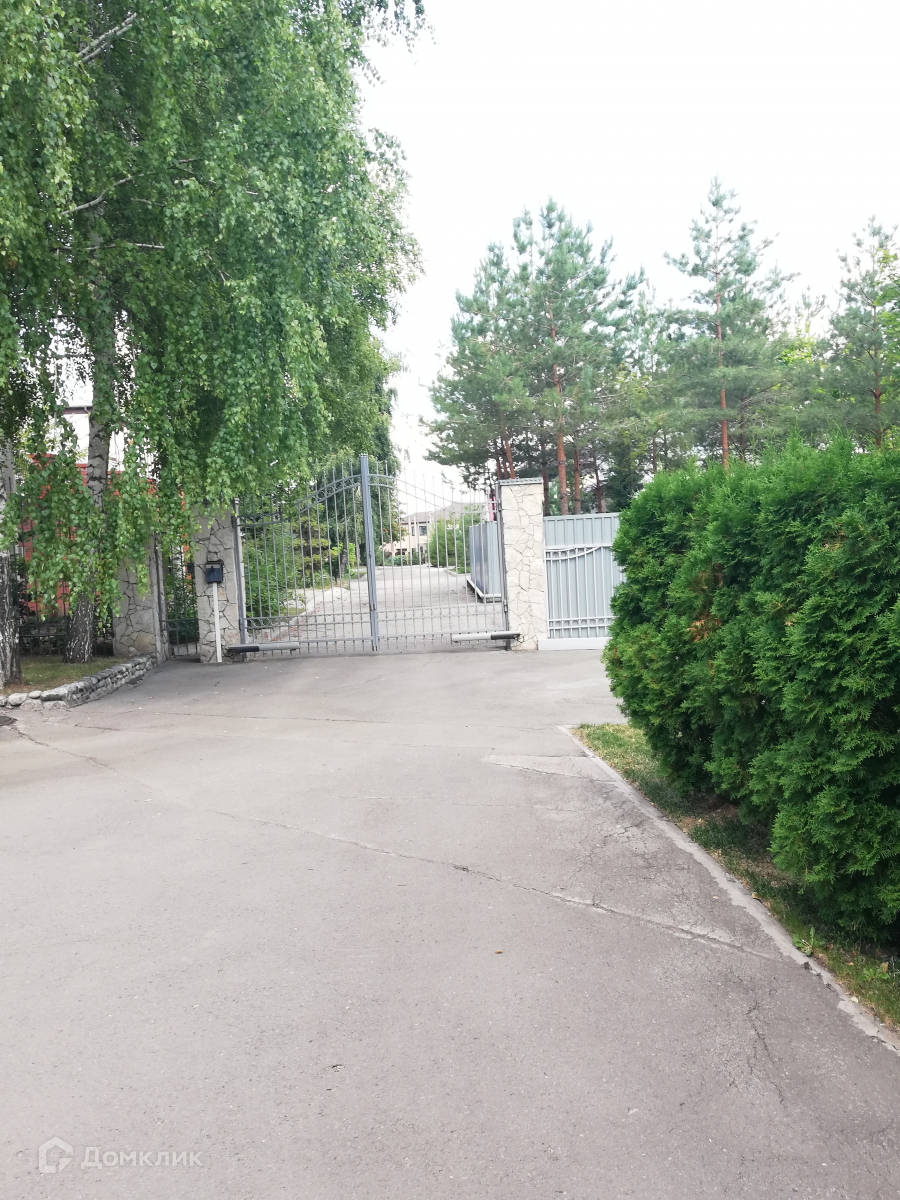 Участок с хвойными и лесными деревьями, по периметру огорожен забором, имеет въездную группу с автоматическими воротами и вольер для собак или дикого зверя по периметру.