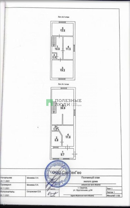 Жилая площадь 44.3 м2