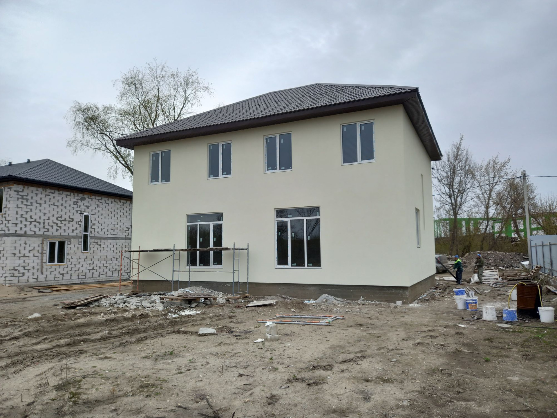 Продаётся танхаус на 2 семьи. Это не часть дома это полноценный дом со своим земельным участком, отдельными коммуникациями и входом. Дом расположен в центре нового коттеджного посёлка в районе перинатального центра. Дорога до дома отсыпана, участок находится не у дороги(3 участок от дороги). Соседи адекватные. В перспективе поставят закрытые ворота в посёлок. 2022 года постройки. В дом заведены свет и вода. Канализация автономная 2 кольца по 1.5 метра. На газ поданы тех условия. Материал стен дома газостликатный блок, на улице утепленный 5 см слоем пенопласта. Межэтажное перекрытие- пустотные плиты. Лестница на 2 этаж монолитная. Два полноценных этажа с утеплённым потолком второго этажа.Чердак холодный. Основанием дома служит фундамент состоящий из  6 метровых свай(да-да все верно) и ростверка(600×400) на который уложены плиты. На каждом этаже залиты армопояса. На первом этаже сан узел, кухня и большая гостиная. Второй этаж сделаем по вашему желанию, есть много вариантов. Дом без отделки, но при желании можем сделать отделку в короткий срок по вашим предложениям. Я собственник.  Льготная ипотека не подходит. Подходит только обычная ипотека.