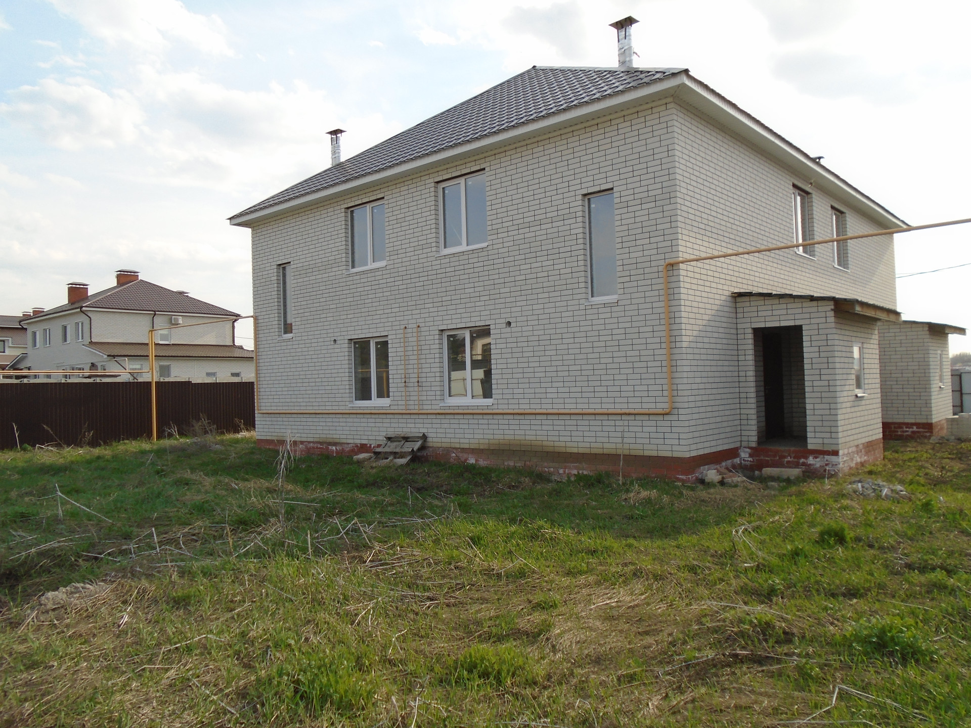 Очень перспективное место в Волжском районе г. Саратова. Начинается застройка старого аэропорта со всей новой инфраструктурой. Напротив дома планируется парковая зона. До остановки городского транспорта  и Сельскохозяйственного рынка пешком 15 мин, до школы и садика 5-7 мин. Дом построен из блоков ГРАС+ облицовка из кирпича, фундамент- ленточный 1.8м глубиной, крыша - металлочерепица, забор - металлопрофиль, выгребная яма 3 кольца 1.5м. Все коммуникации заведены в дом. Внутри сделана стяжка полов ( 1 этаж теплые полы-водяное отопление), штукатурка стен по маякам, проложена электропроводка, сварен каркас лестницы на второй этаж, установлены пластиковые окна, будет подключено газовое отопление ( импортный газовый котел, алюминиевые радиаторы отопления), а дальше полет вашей фантазии по дизайну и ремонту. Дом и земля в собственности одного физ.лица. Возможна ипотека.