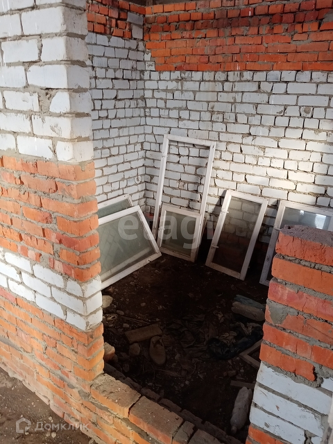 На участке стоит кирпичное строение. Возможно использовать под баню. Коробка, без отделки. 2 комнаты и веранда.