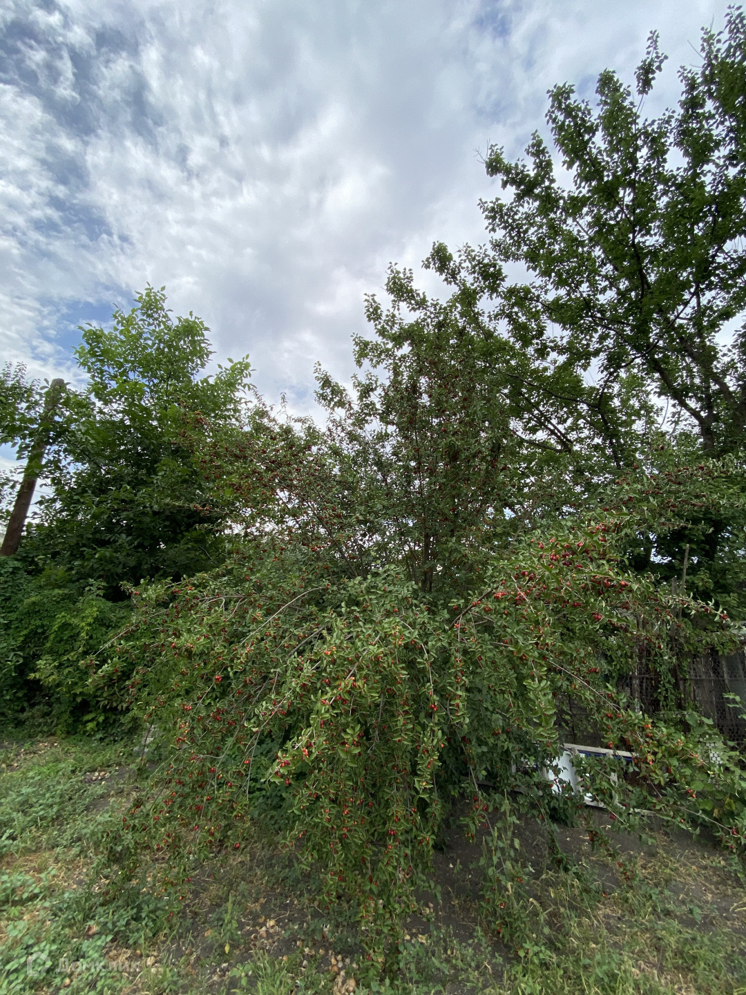 На участке растут плодовые деревья; орех, черешня, яблони, вишня, малина, клубника