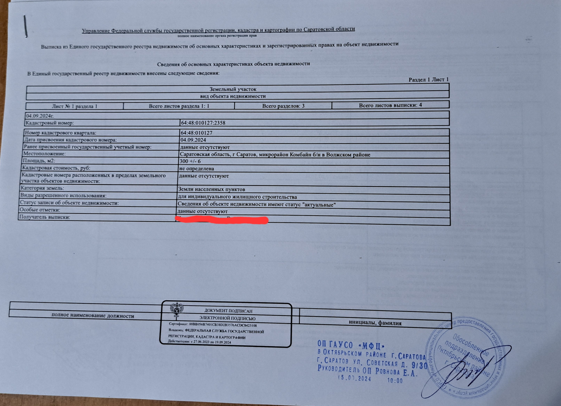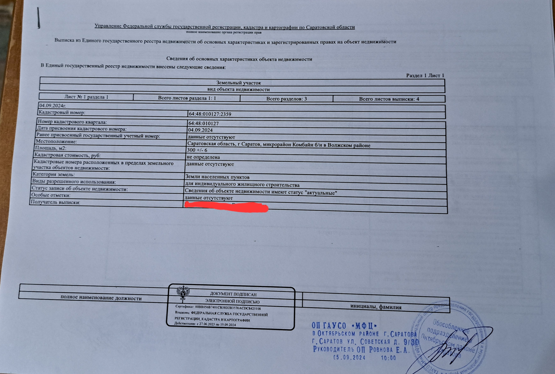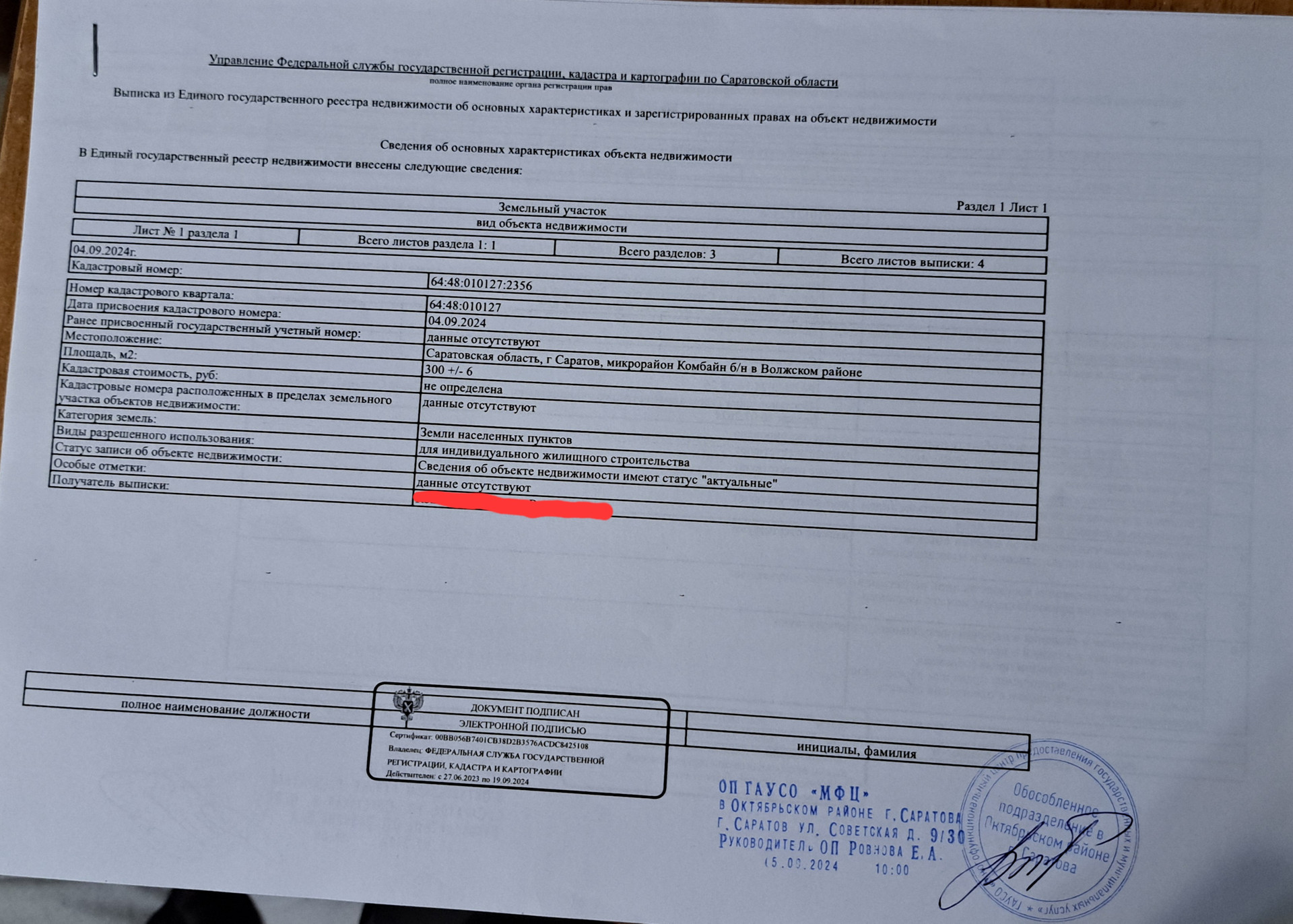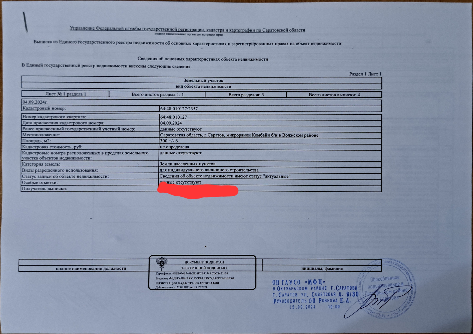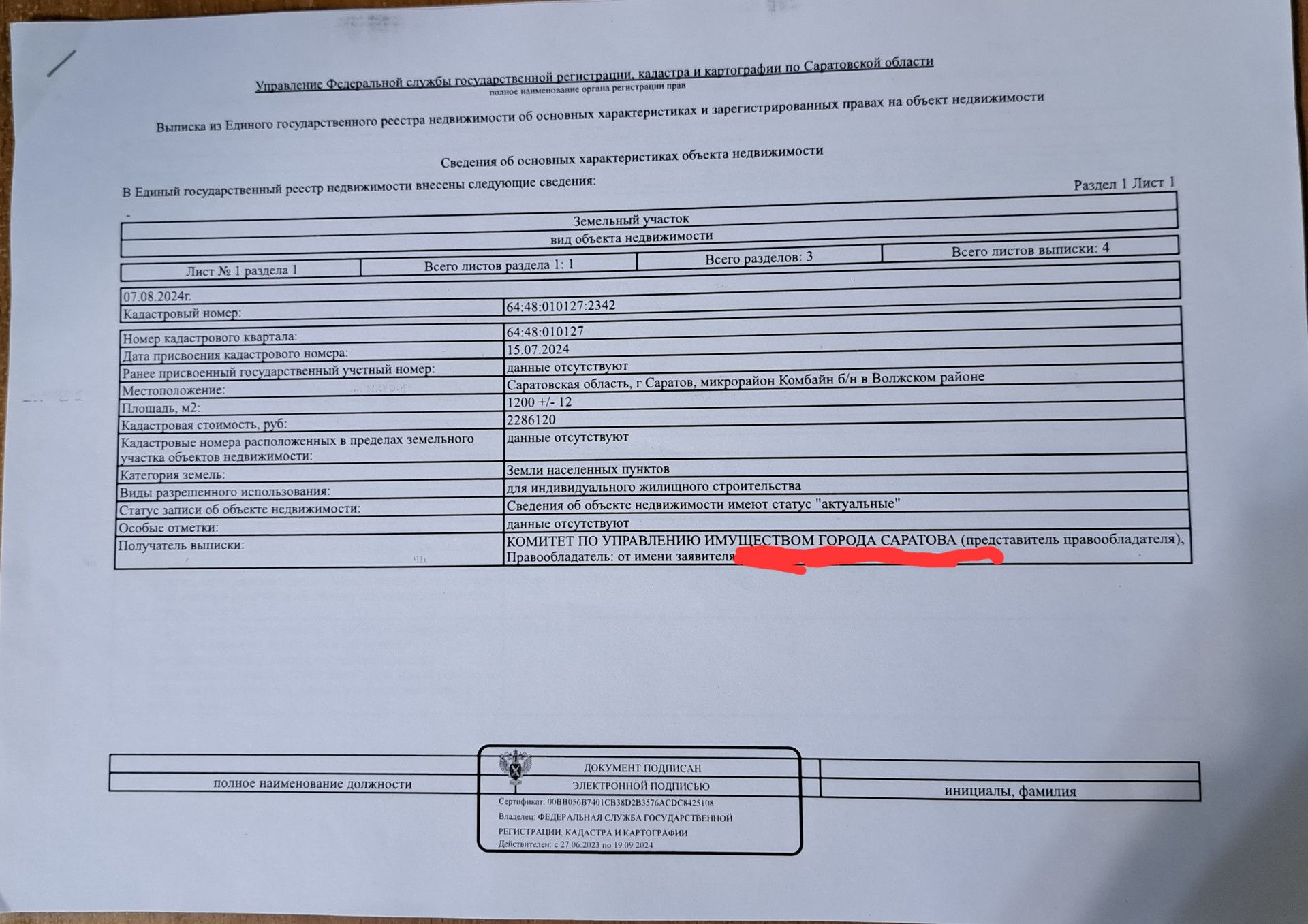 Здравствуйте! Предлагаю к продаже от собственника участок в Волжском р-не г. Саратова в микрорайоне Комбайн-одном из лучших коттеджных поселков города. До п. Юбилейный 5 минут. Ходит общественный транспорт, развита вся инфраструктура. Категория участка ИЖС и участок находится в частной собственности. з/у расположен за пятиэтажными домами в коттеджном ряду. Асфальтированная дорога проходит в 12 метрах от границы участка. Расстояние от дороги до границы участка является зоной общего пользования на которой прекрасно разместятся парковочные места или палисадник.