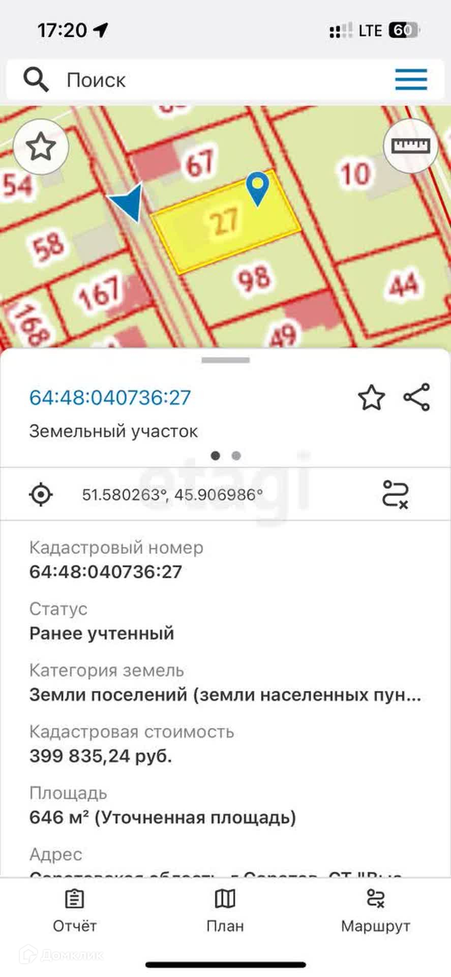 Площадь участка 6 сот.