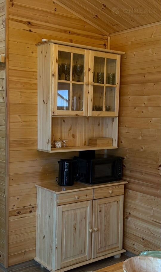 Кухонная зона оборудована электрическим чайником, тостером, индукционной плиткой, электрическим кофейником, комплектом посуды на 6 гостей (тарелки в 4 размерах, 2 сервировочные большие, стаканы, чайные чашки, кружки, фужеры, рюмки), столовыми приборами, посудой (кастрюля, сковородка, сотейник) и другими кухонными приборами и приспособлениями для приготовления еды; заварочным чайником, чаем, кофе, сахаром, мёдом, разнообразными специями и приправами, тумбой с электропомпой с питьевой водой.