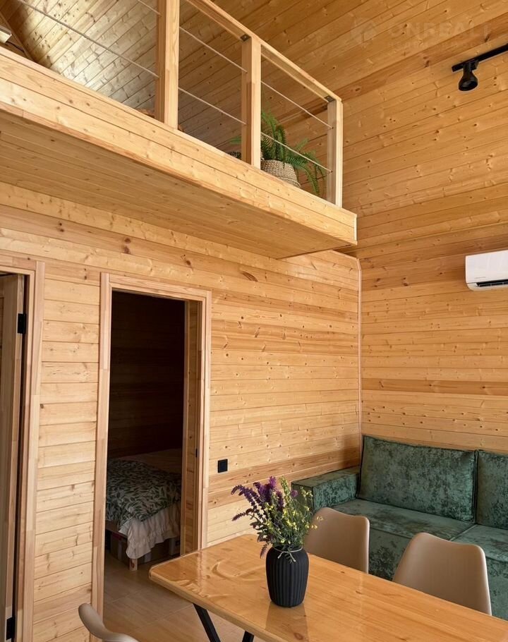 1 этаж: гостиная, спальня, ванная; 2 свет: спальня-гостиная), рассчитан на 6 спальных мест (+дети, без предоставления отдельного спального места)