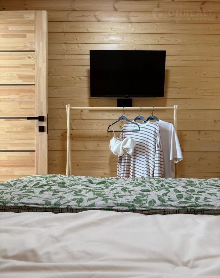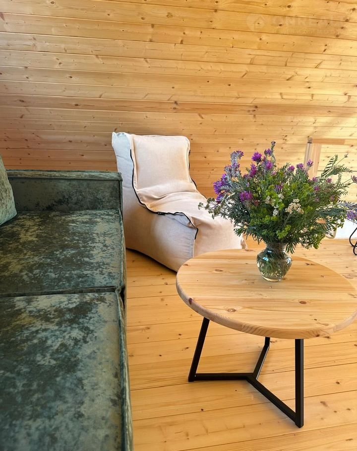 В спальне-гостиной на 2 этаже имеется раскладной диван (160х200) с постельным бельем, 2 удобных пуфа и журнальный столик, напольная вешалка с полкой для одежды.