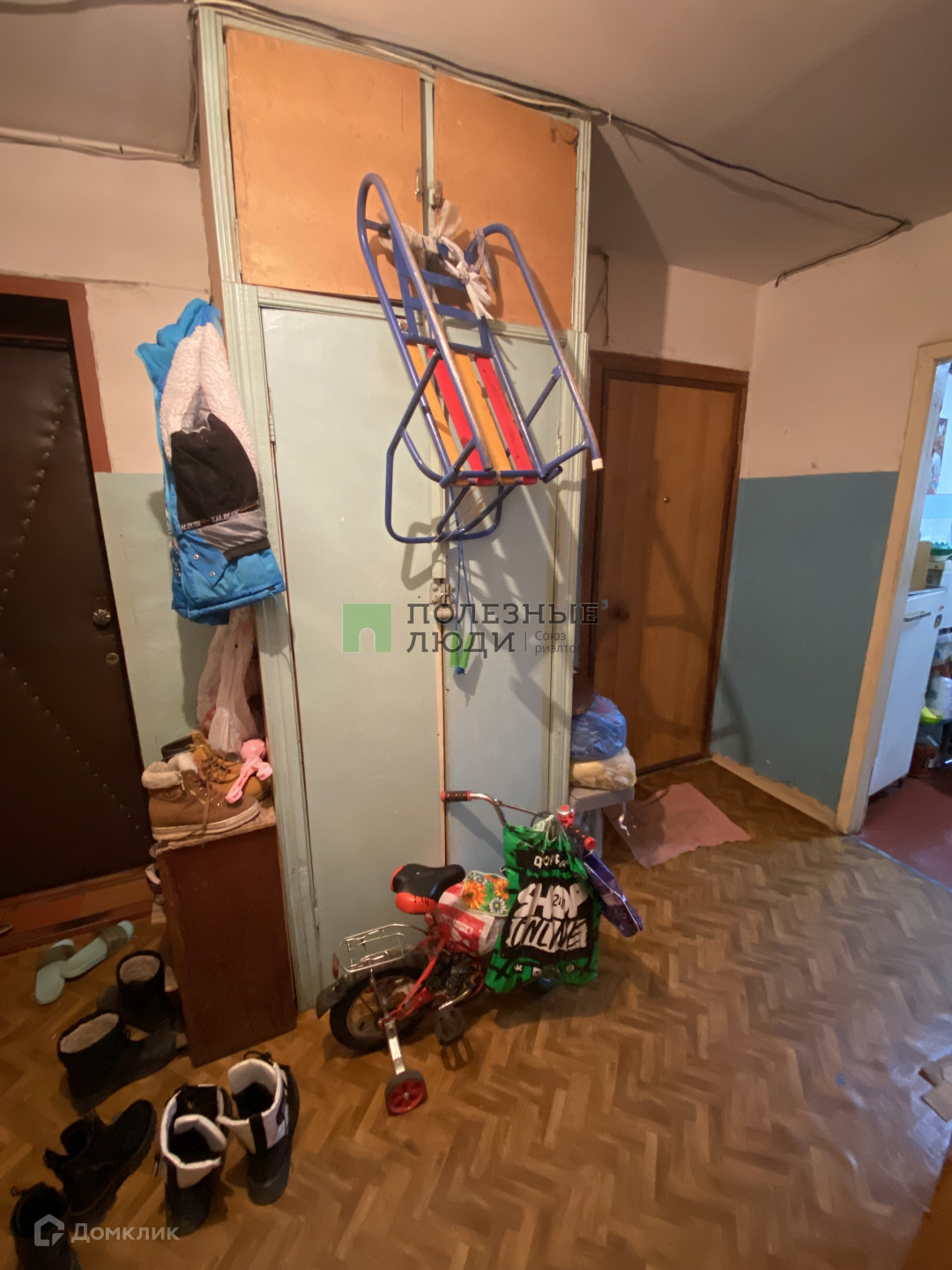 Соседи - семейная пара. Прихожая на две комнаты, просторная, имеется свое место, где стоит холодильник и шкаф для хранения