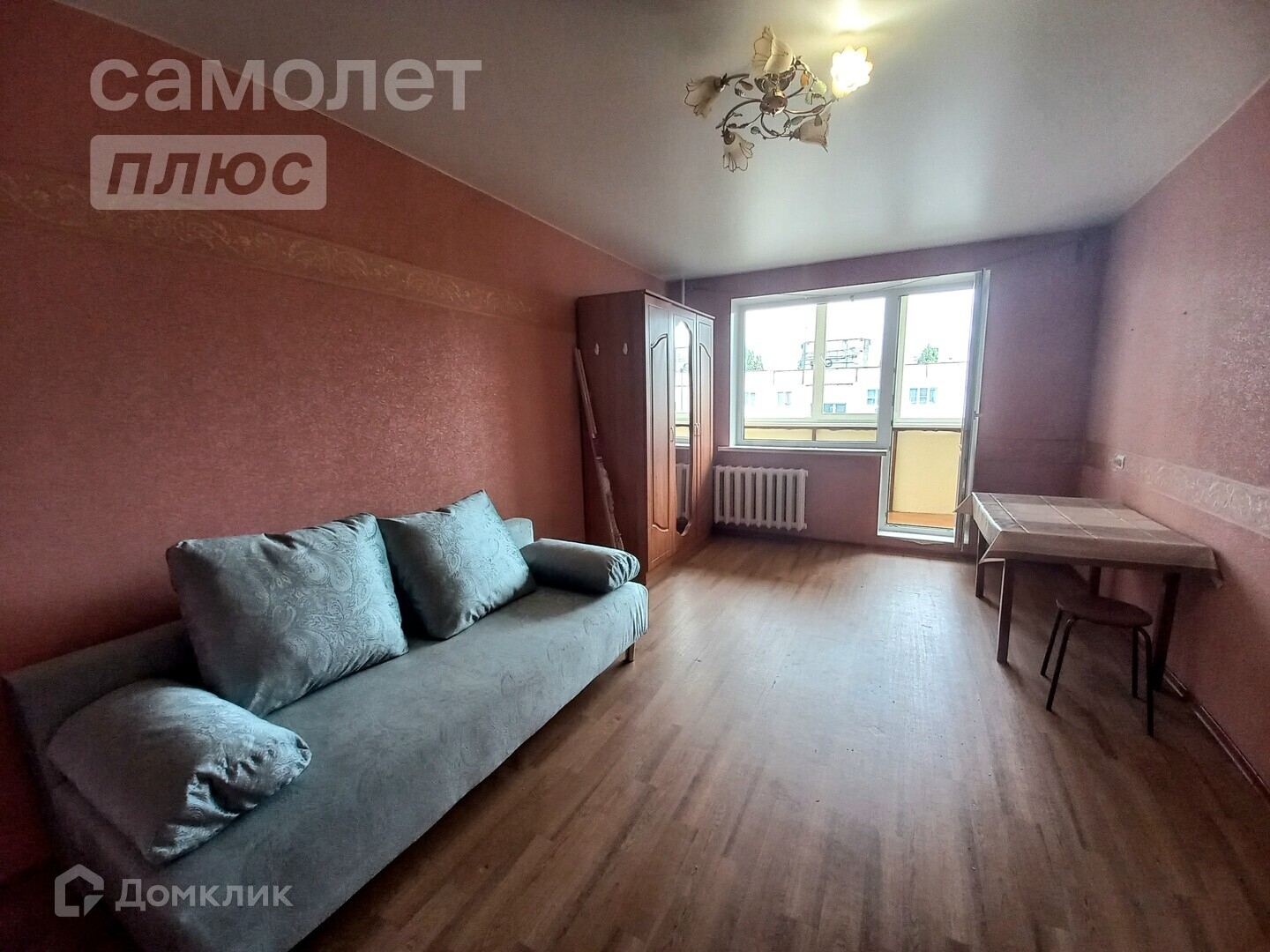 В комнате имеется все необходимое для проживания : новый двух-спальный диван, шкаф, стол (телевизора нет)