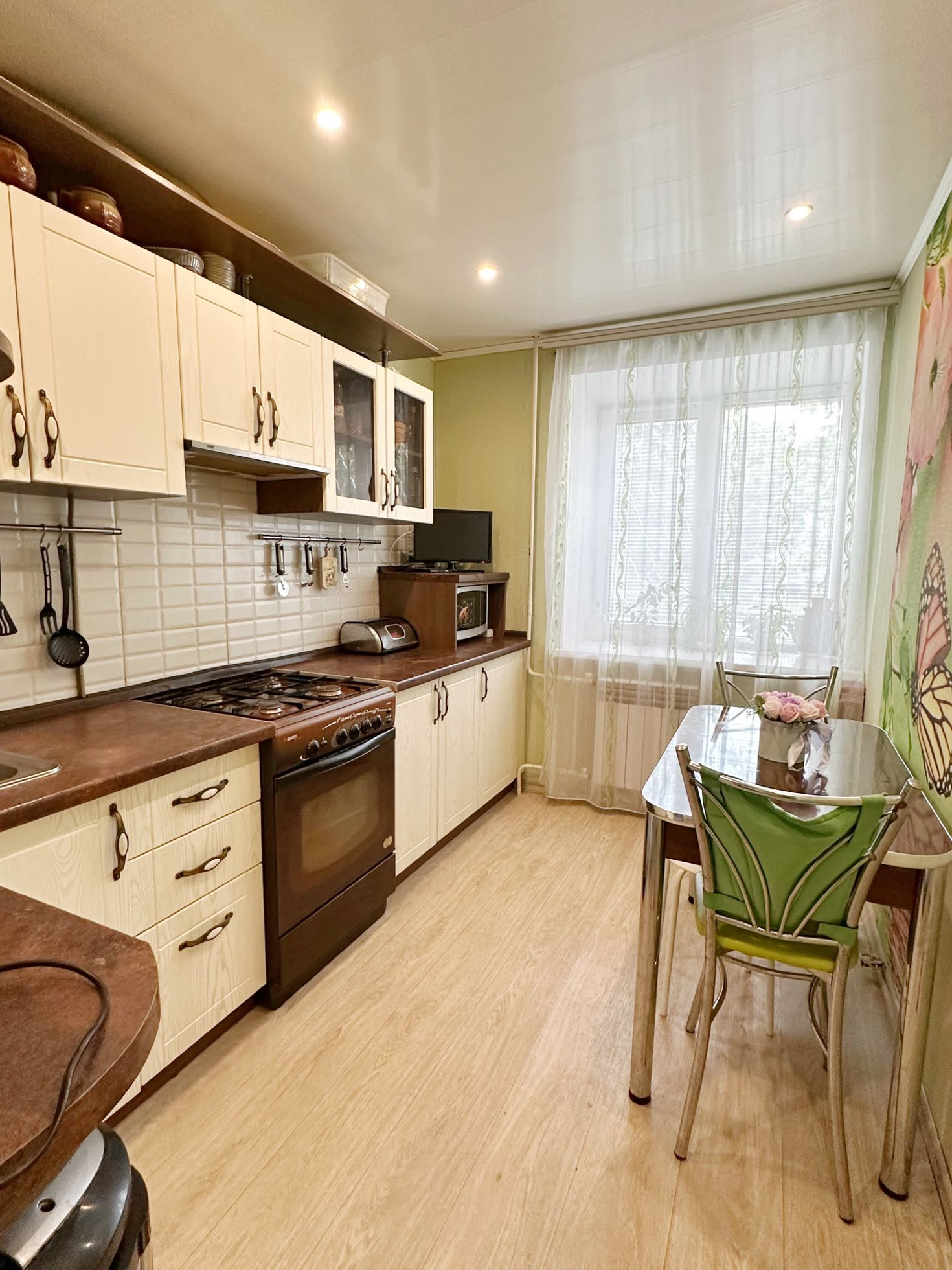 Квартира расположена в тихом, зеленом дворе. В районе с хорошо развитой инфраструктурой. Стороны света восток-запад. Приятная, теплая светлая и очень уютная. В квартире остается и входит в стоимость кухонный гарнитур и шкаф купе в коридоре. Есть лоджия с погребом. Подойдет под все виды кредитования. Собственник совершеннолетний. Готова к продаже. Р.S. С квартирой можно так же приобрести отличный г