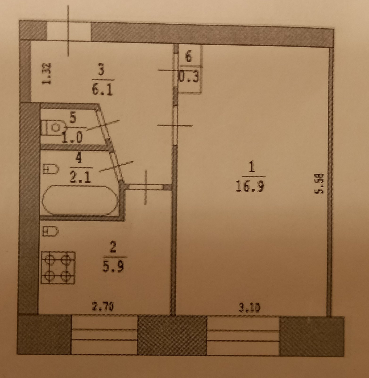 Площадь кухни 5.9 м2