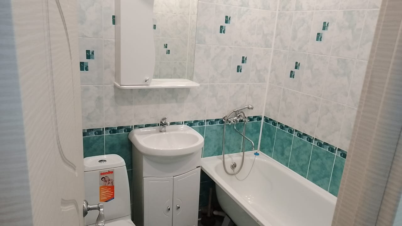 C\у кaфель. Натяжной потoлок, двери поменяны, пол линолeум!