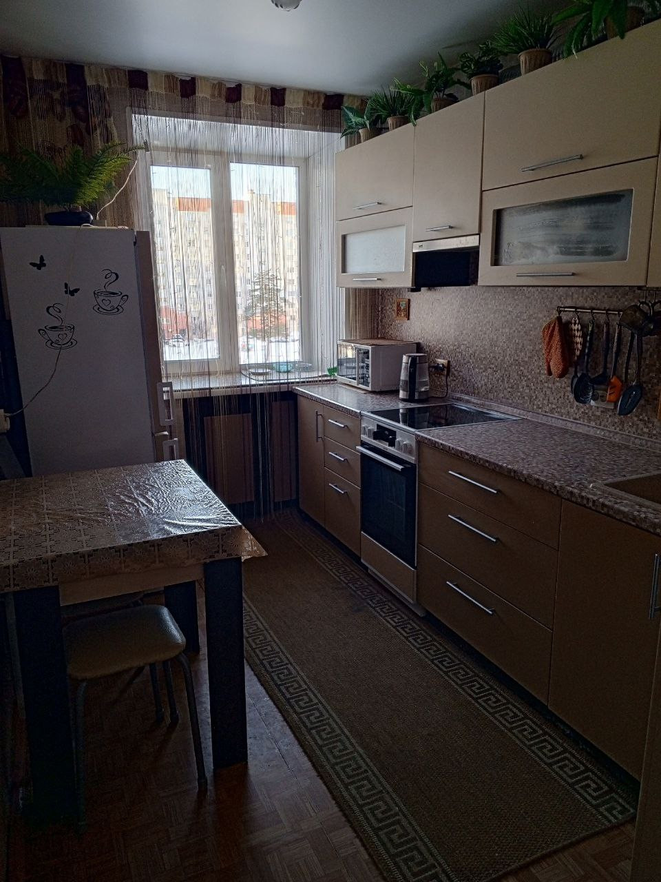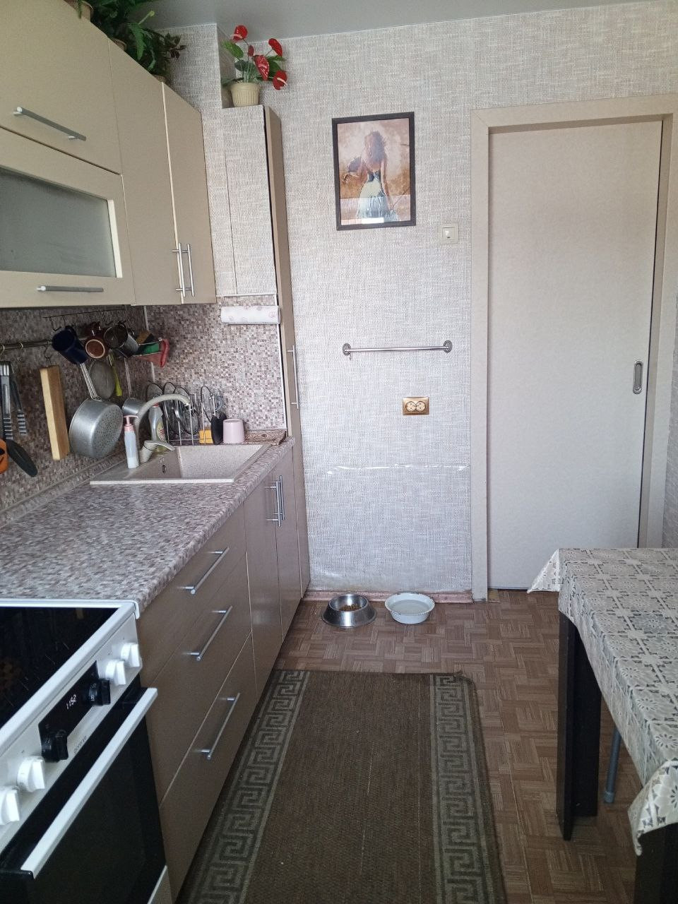 частичный ремонт, окна пластиковые, натяжные потолки, остается кухонный гарнитур с техникой, мебель в ванной, стиральная машина