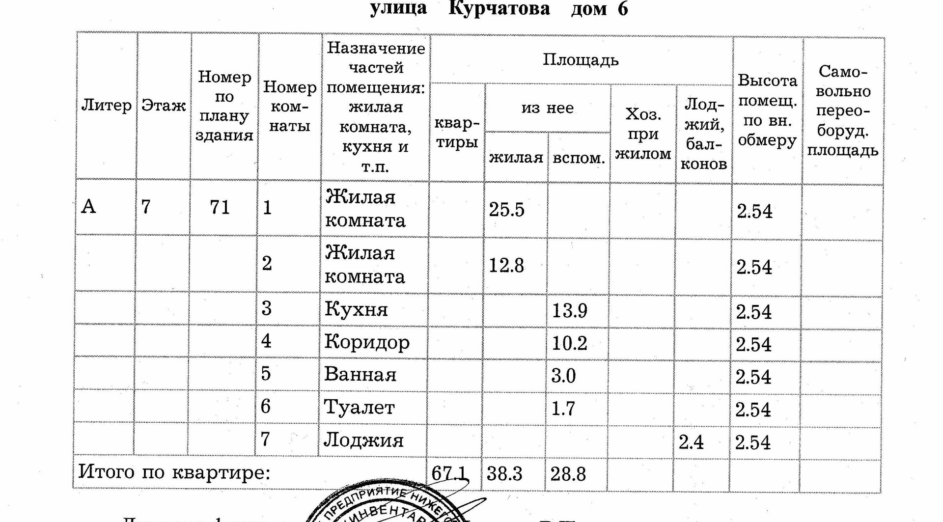 Общая площадь 67.1 м2