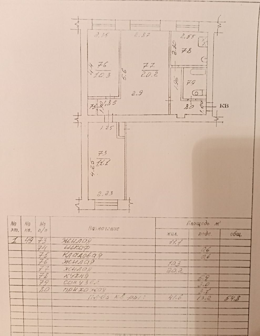 Общая площадь 54.8 м2