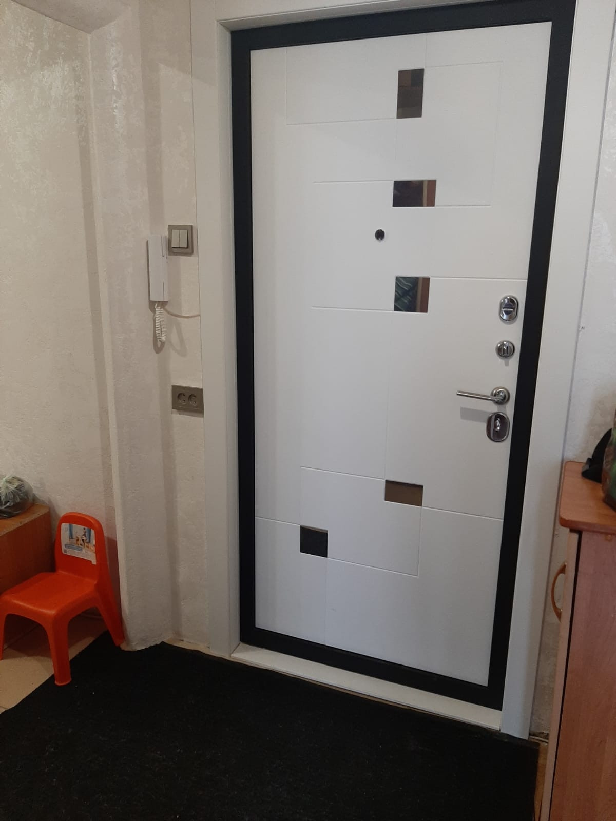 С/узел в кафеле, усиленная новая входная дверь.