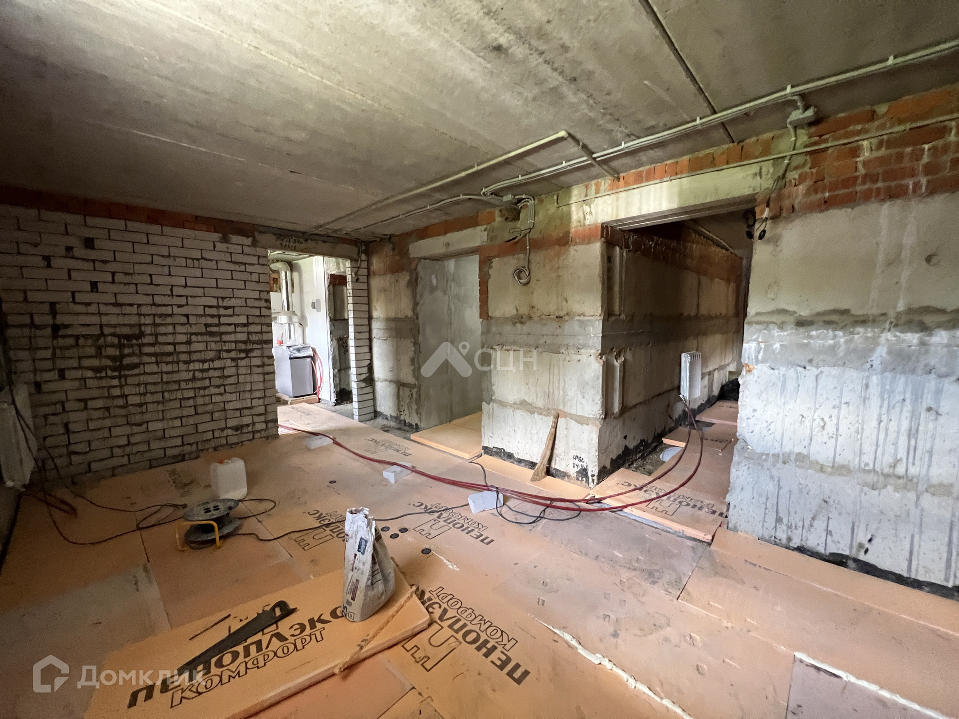 Полностью разведена электрика, все коммуникации подведены и разведены по дому.