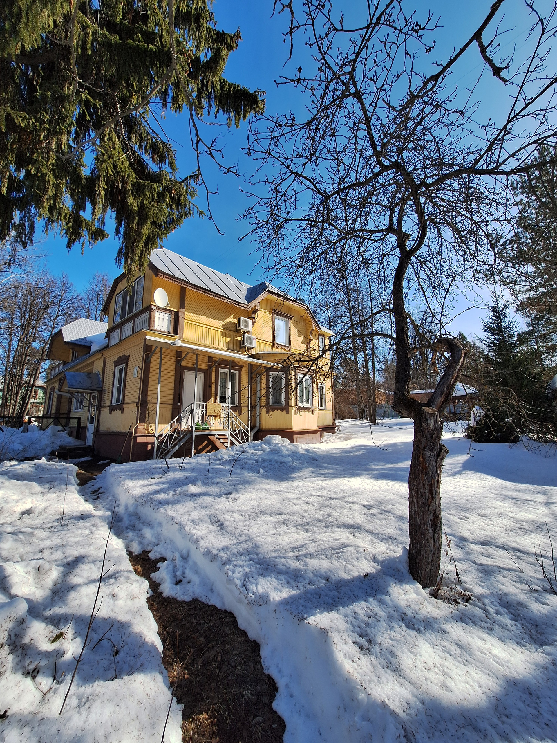 - на втором этаже: две изолированные жилые комнаты: одна 13.1 кв.м. с балконом с видом на улицу, вторая комната 17.6 кв.м. с верандой 9 кв.м. с видом на сад, большая мансардная холодная кладовая с выходом на чердак, санузел 5.8 кв.м.