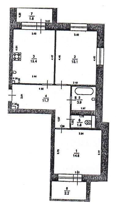 Площадь кухни 15.4 м2