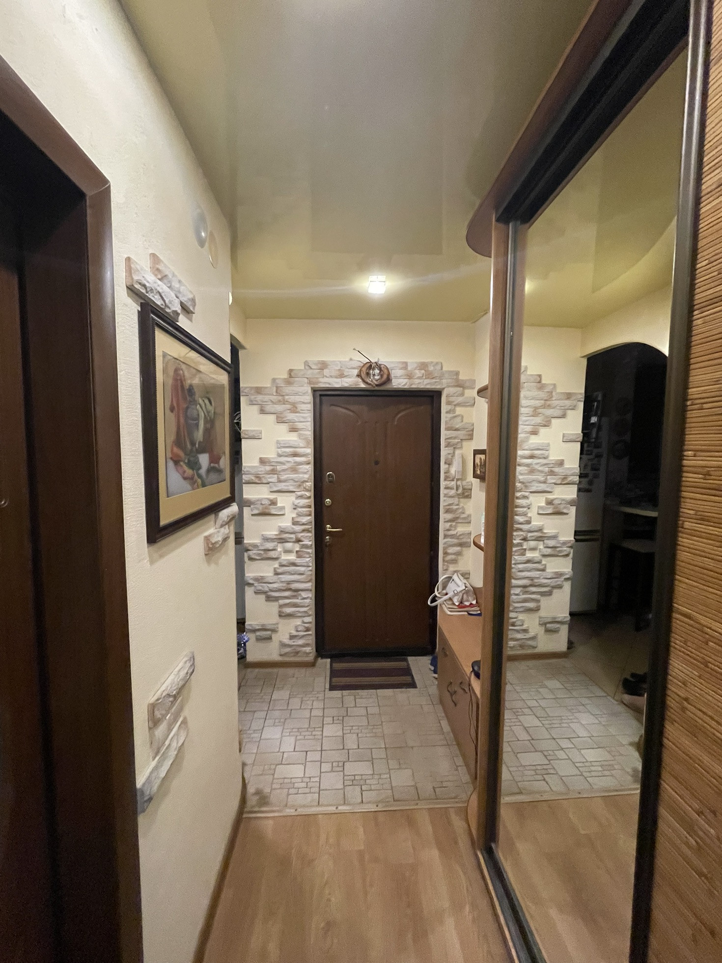 Продается 3-х комнатная квартира. В квартире, кроме одной комнаты, сделан ремонт. Санузел в плитке. Окна пластиковые с ламинацией. Подоконники из искусственного камня. Остается кухонный гарнитур из массива дерева (фирма Мария) со столешницей из искусственного камня. Остается прихожая (шкаф купе + тумба для обуви).