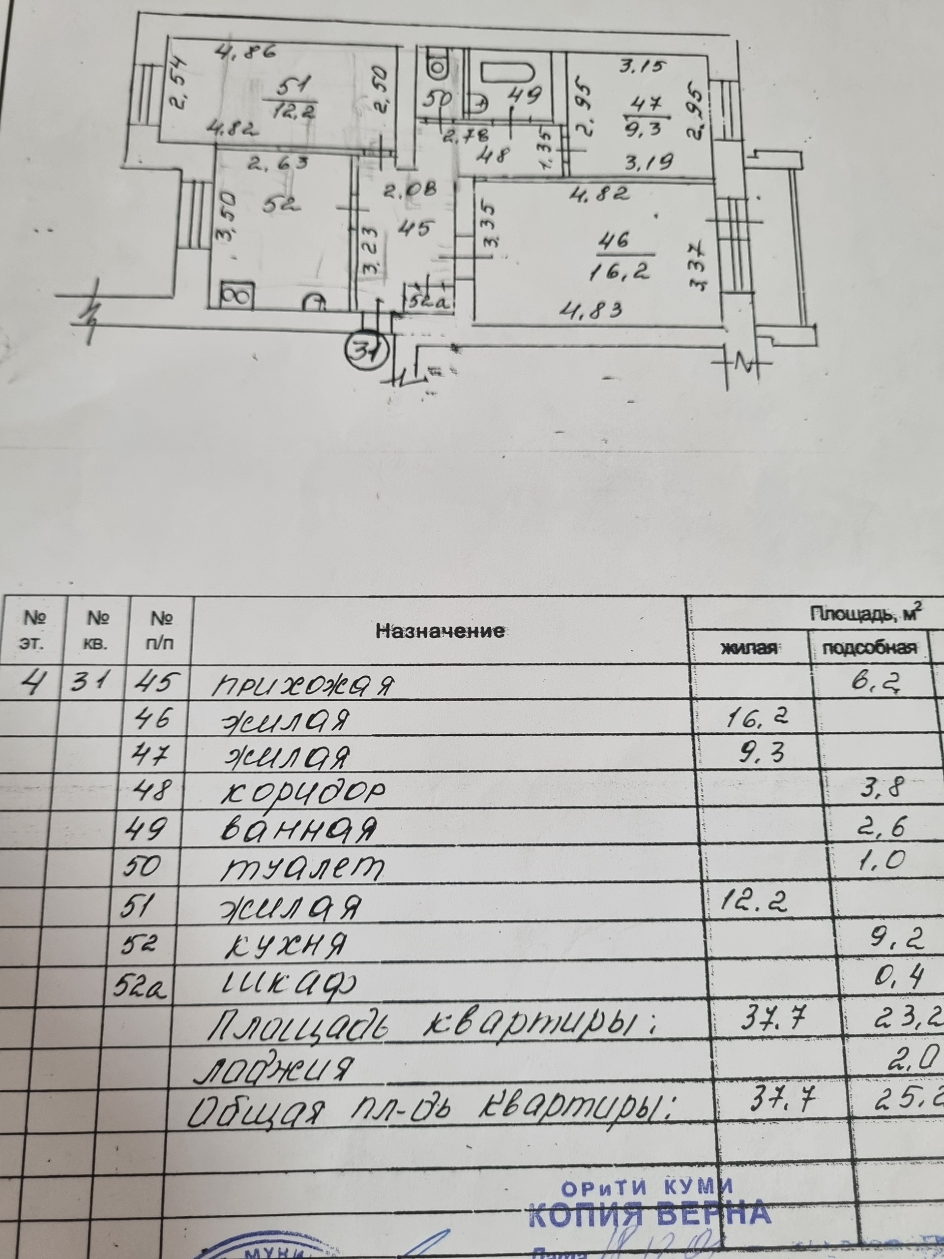 Жилая площадь 37.7 м2