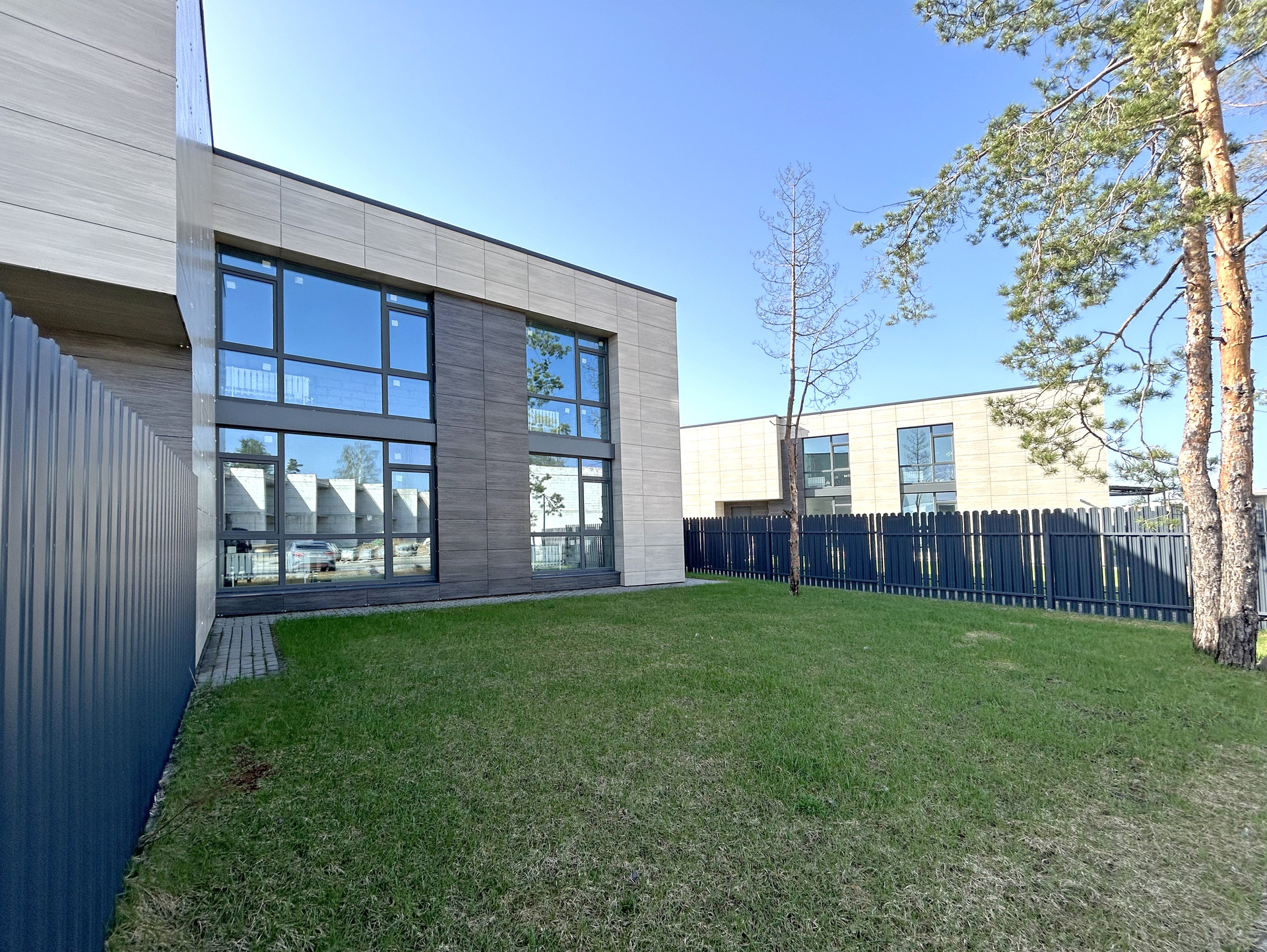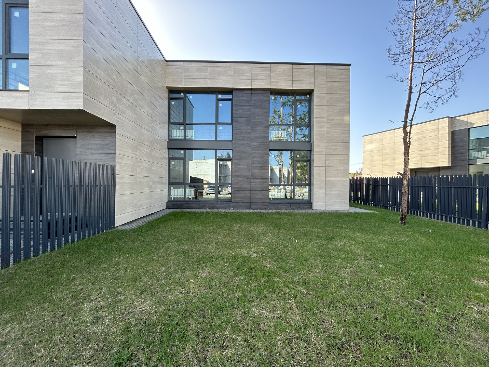 Отдельный благоустроенный участок от 3 до 5 соток для каждой секции блокированного дома. Отдельные входы расположены с разных сторон дома, вы почти не пересекаетесь с соседями.