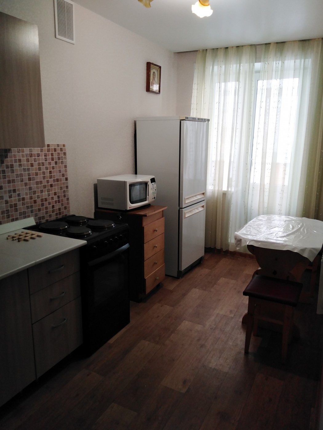 сдам 1 кв с ремонтом и мебелью. кухонный гарнитур, микроволновка, холодильник. стиральная машинка