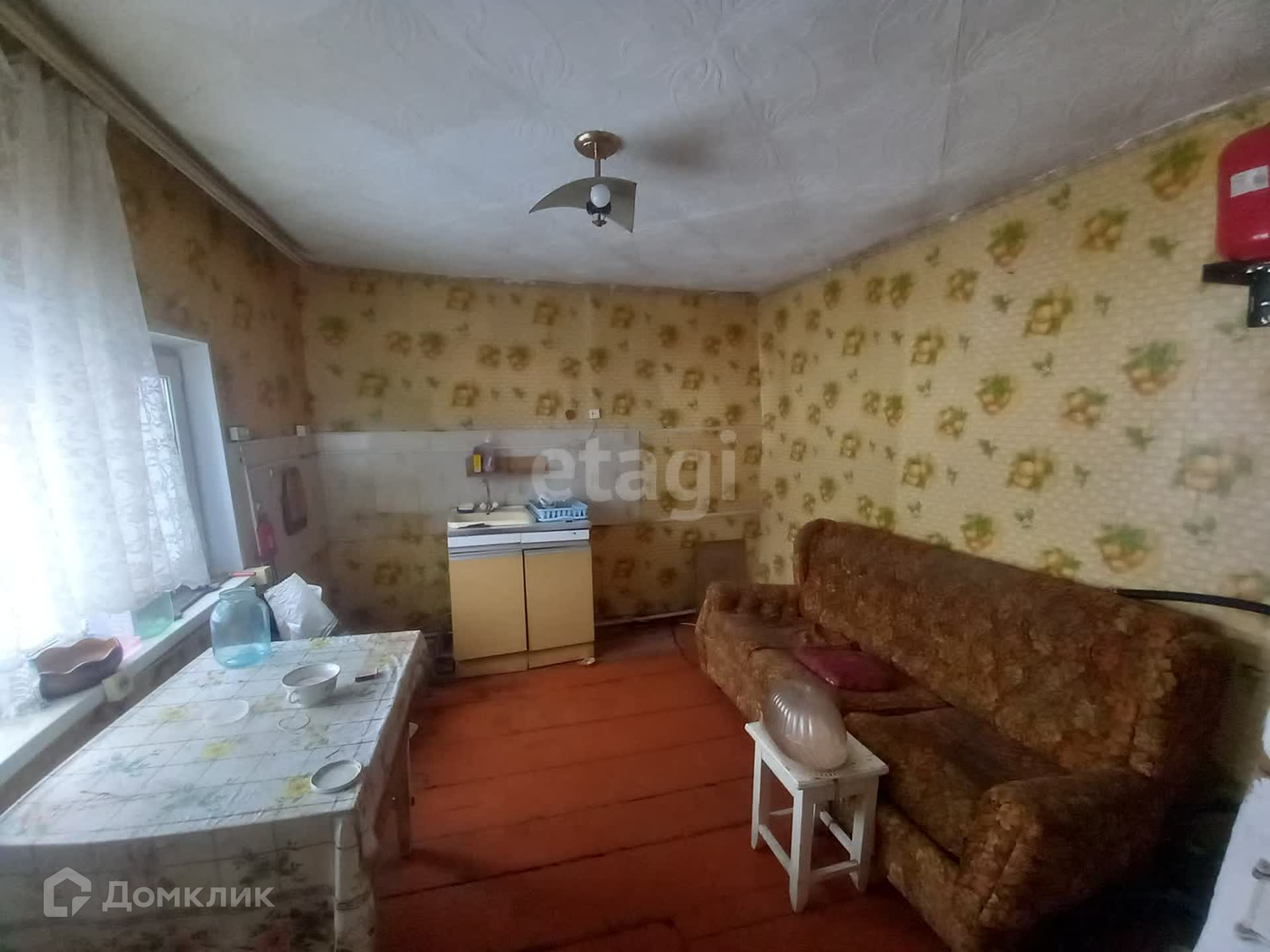 В доме одна большая комната и кухня. Есть погреб.