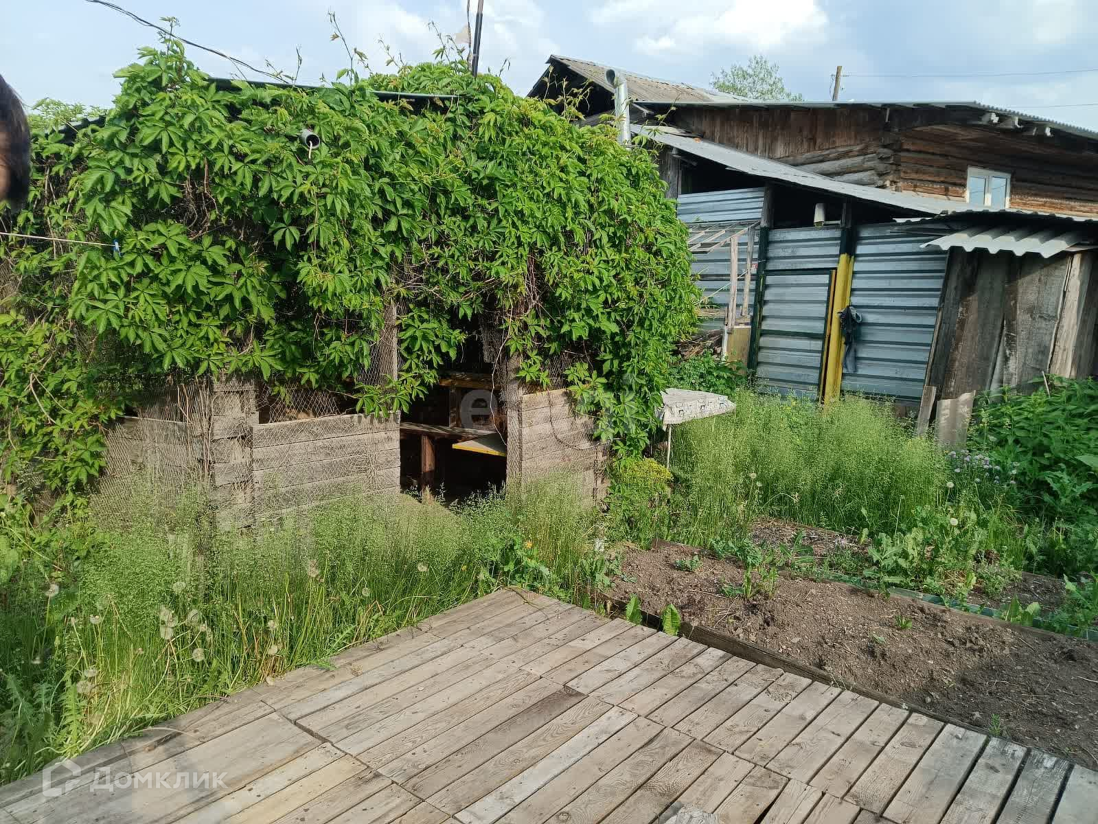 Участок разработан, имеются плодовые насаждения, беседка, напротив беседки оборудован деревянный настил для установки бассейна.