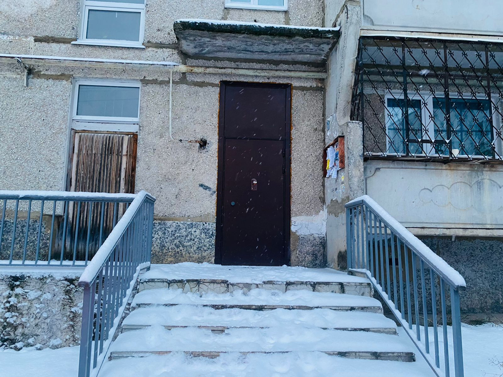 Просторная прихожая, входная металлическая дверь.