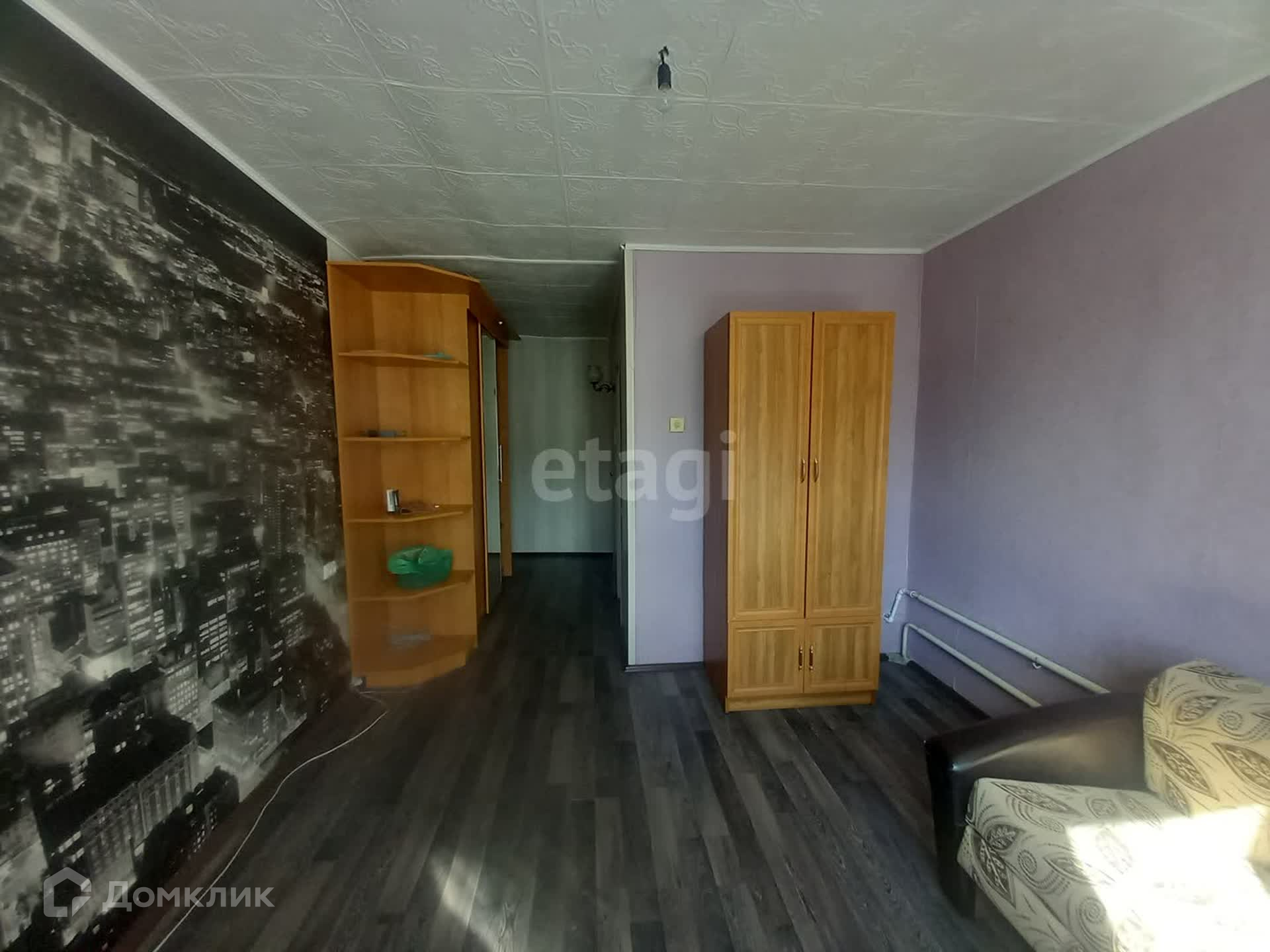 В квартире остается кухонный гарнитур, два шкафа и стенка в гостиной.