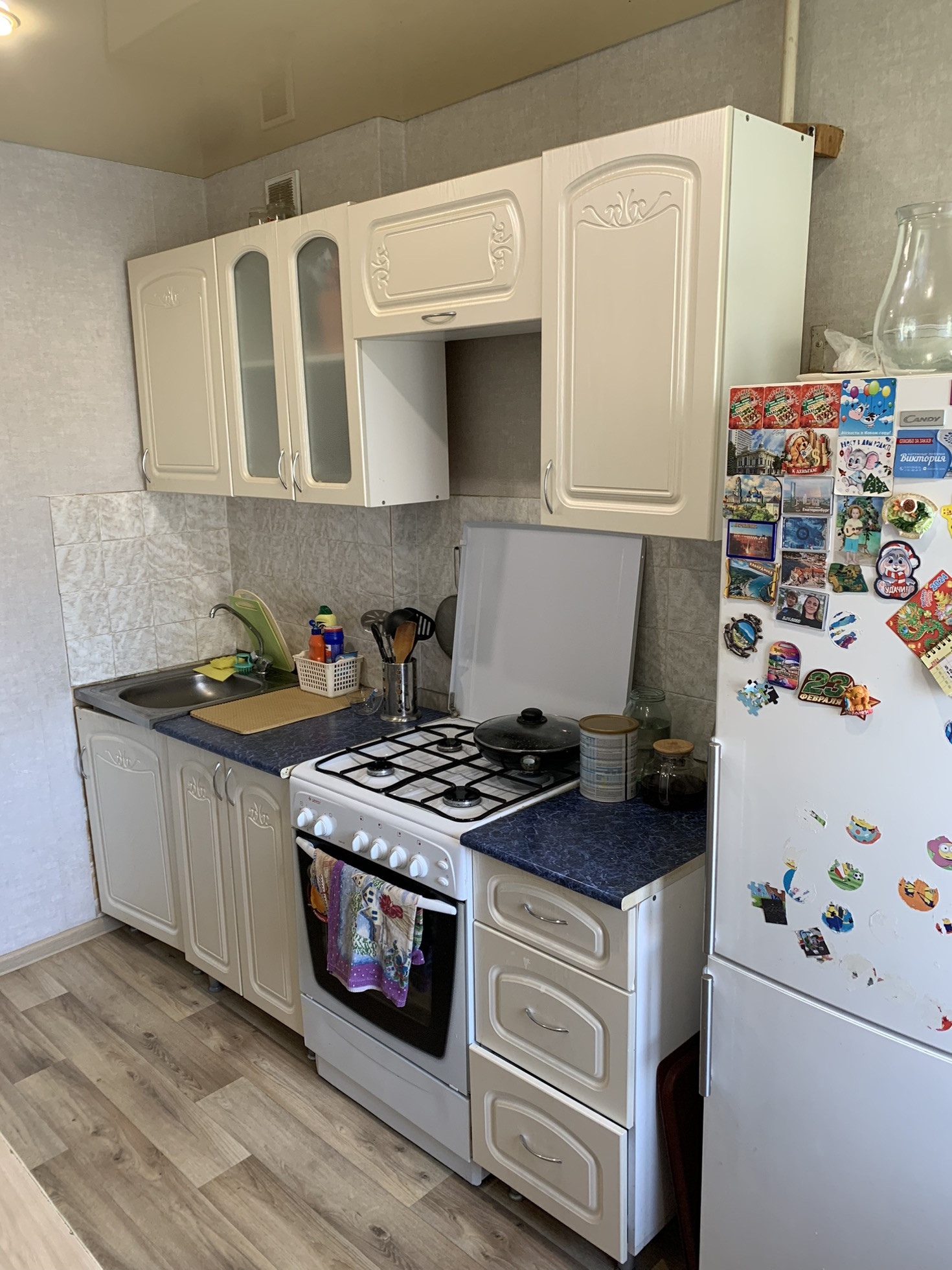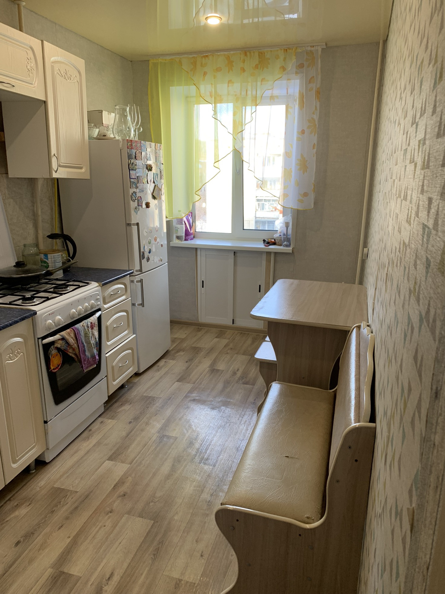 Продается уютная  квартира , балкон не застеклен , натяжные потолки , туалет в панелях , ванна в кафеле ,частично остаётся мебель , входная дверь « торекс » развитая инфраструктура, магазины , аптеки в нашем доме , детская поликлиника прям в доме, взрослая через дорогу, садик за углом.