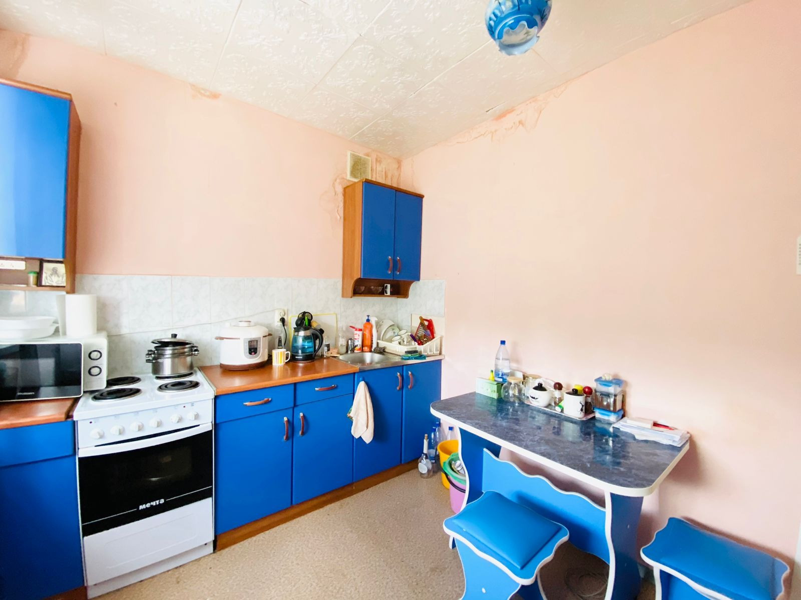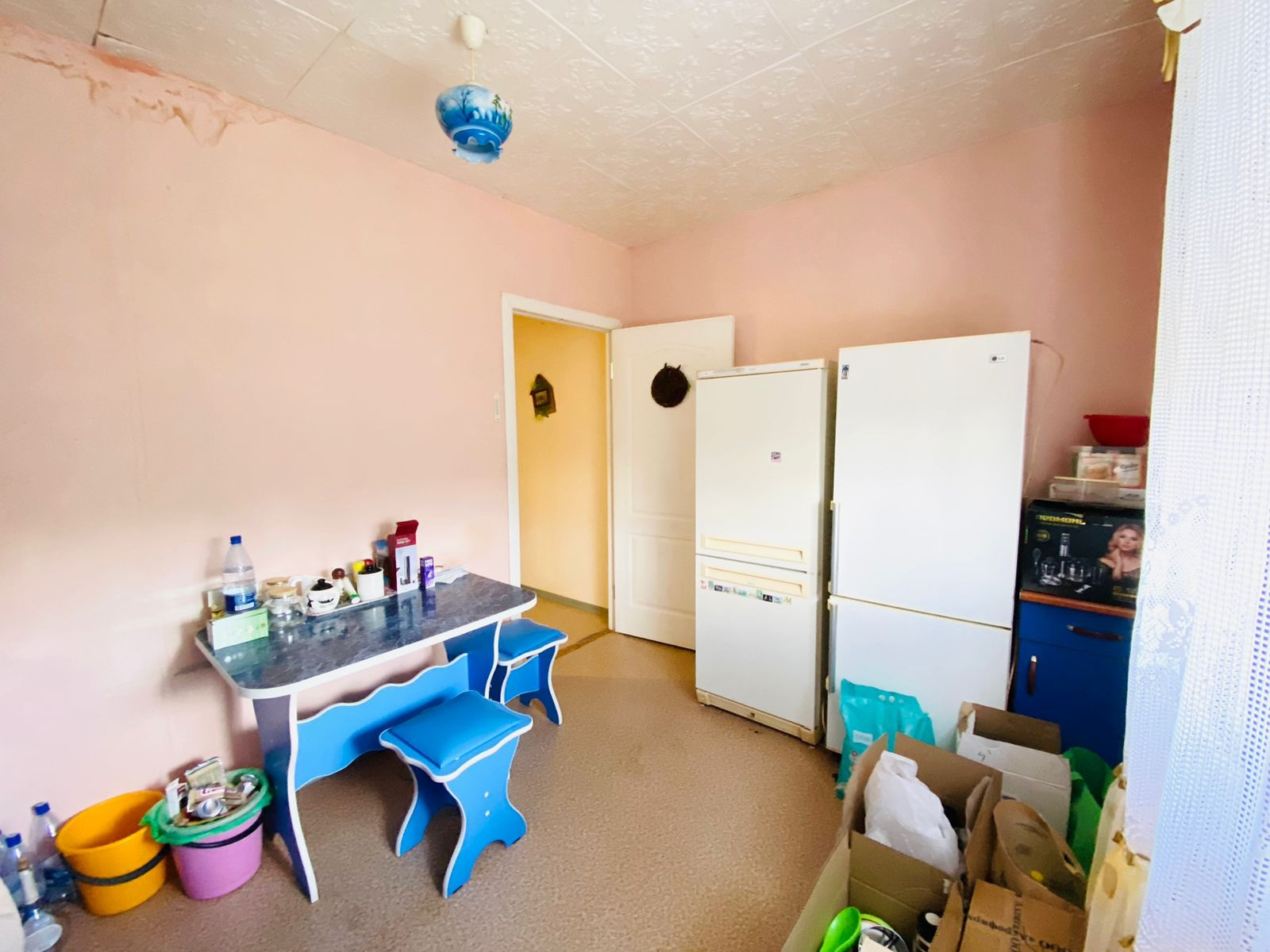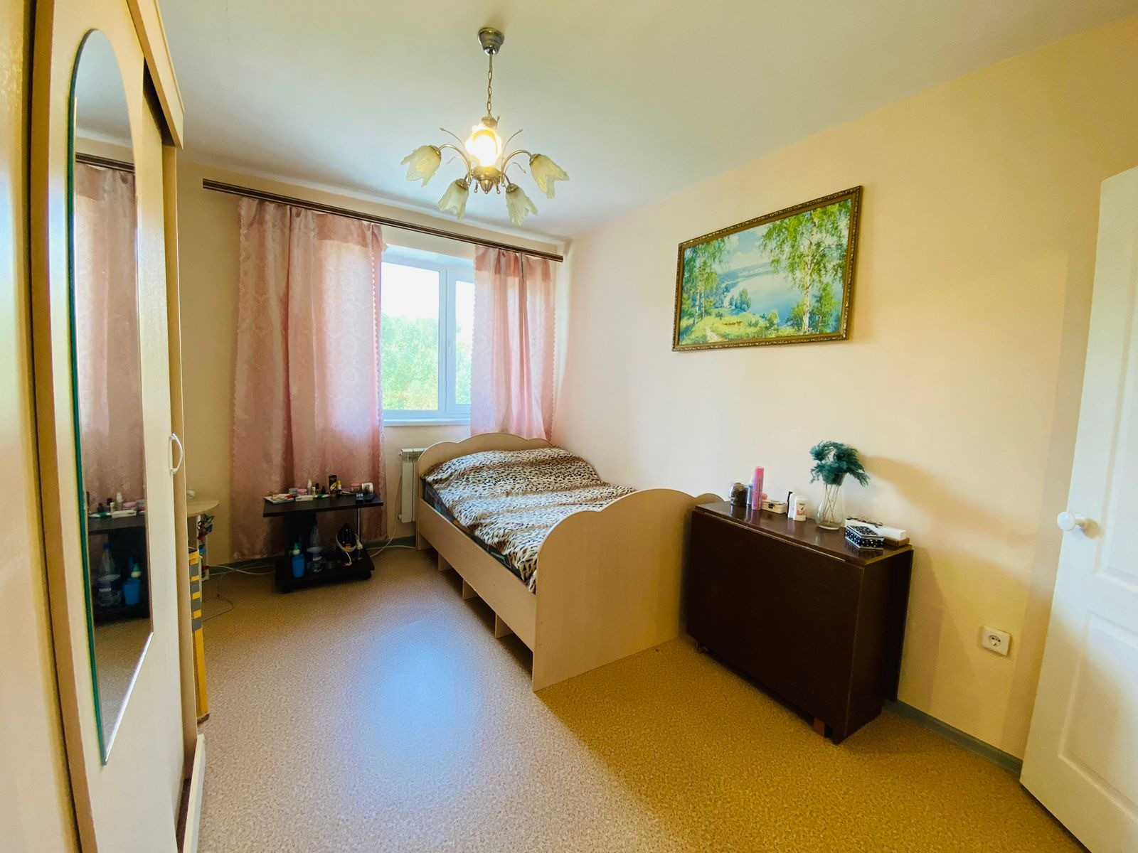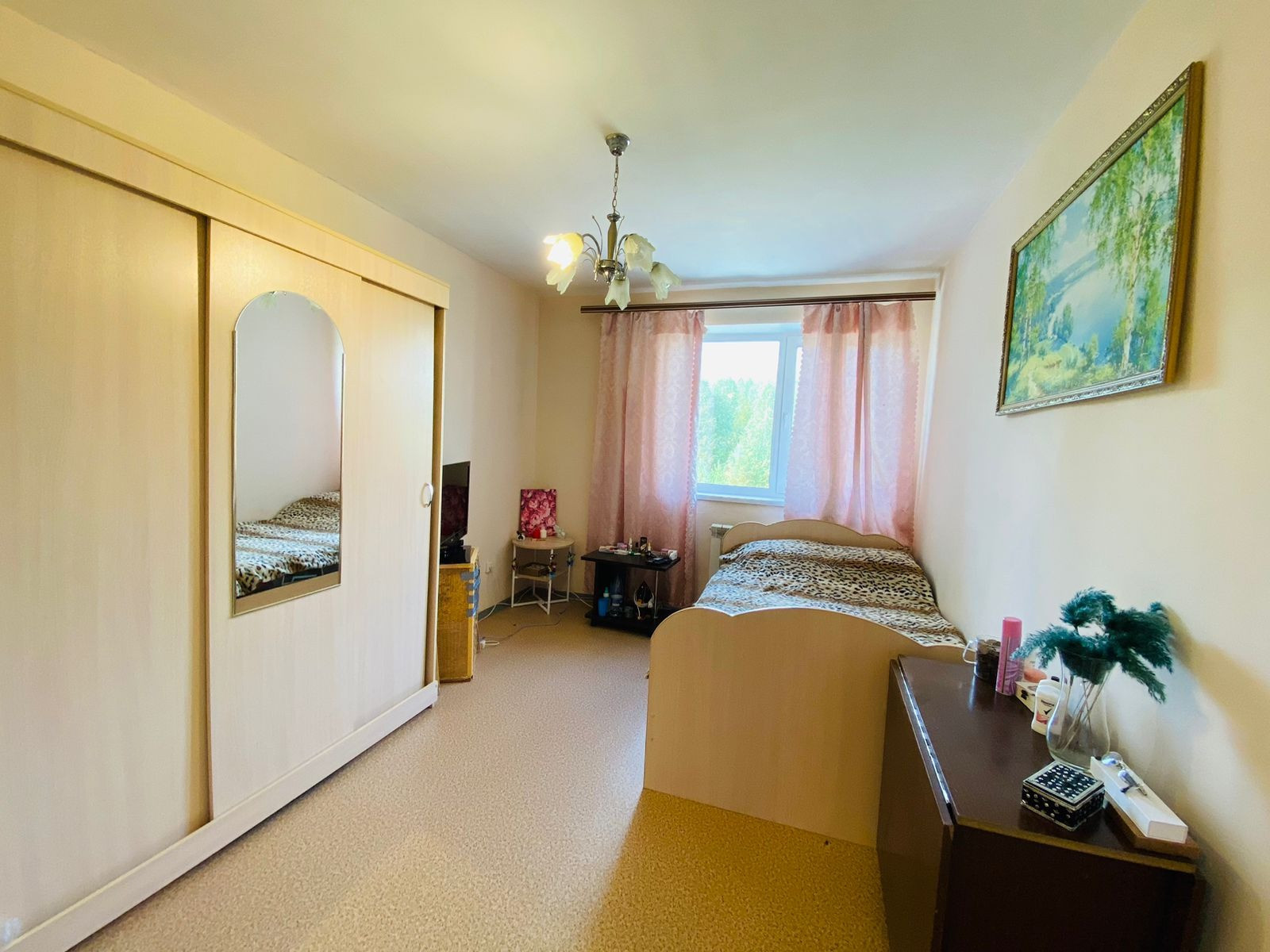 Установлены пластиковые окна, балкон застеклен. Потолок побелен стены окрашены в светлых тонах, санузел совмещенный, на полу линолеум по всей квартире.
