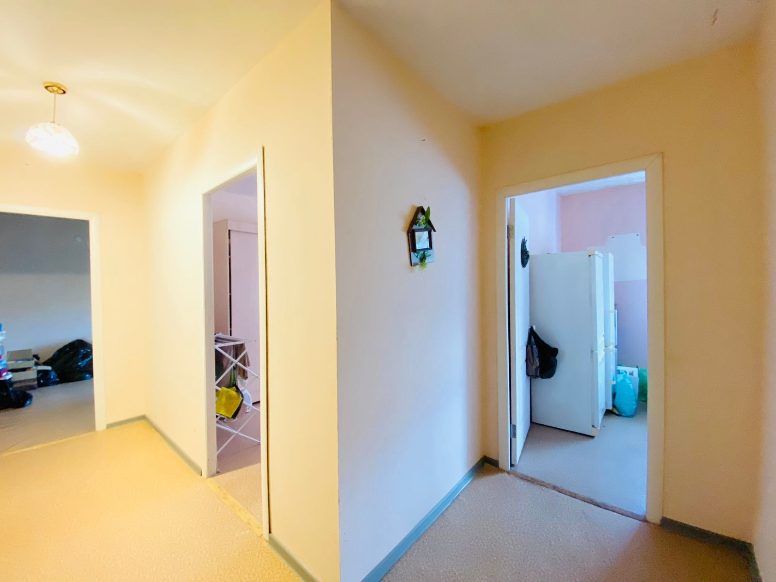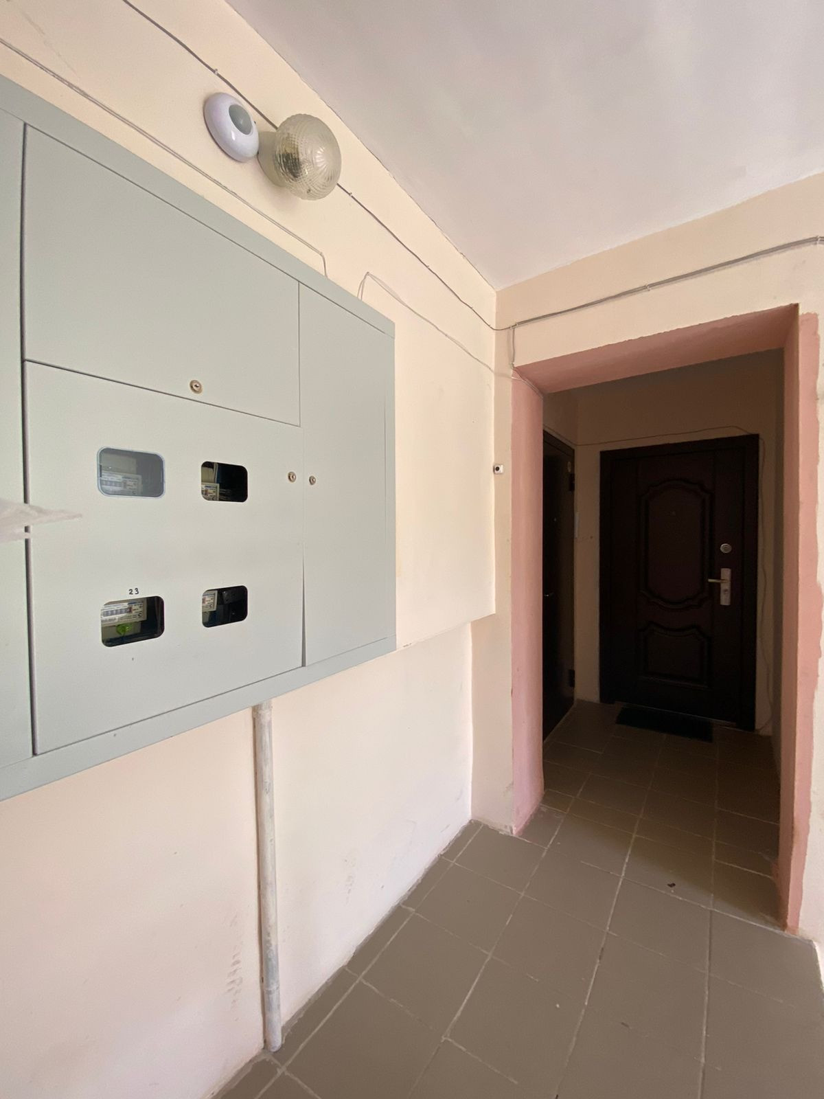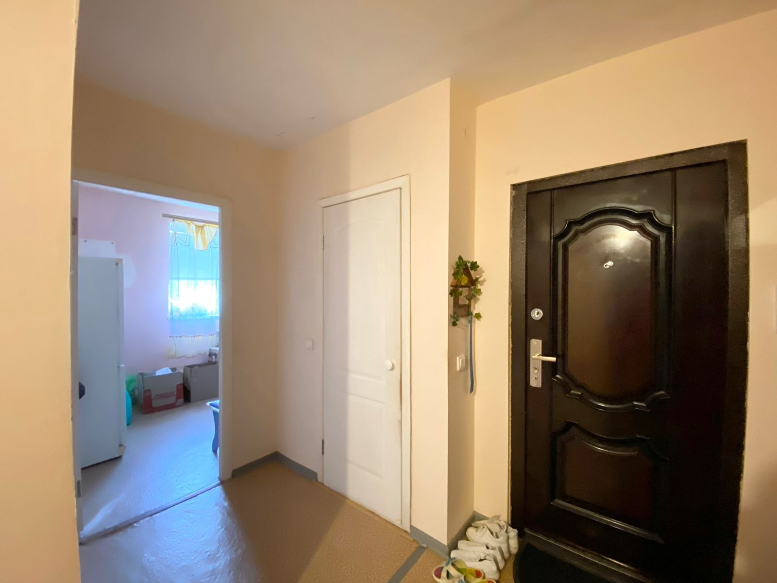 Просторный коридор и прихожая, входная металлическая дверь.