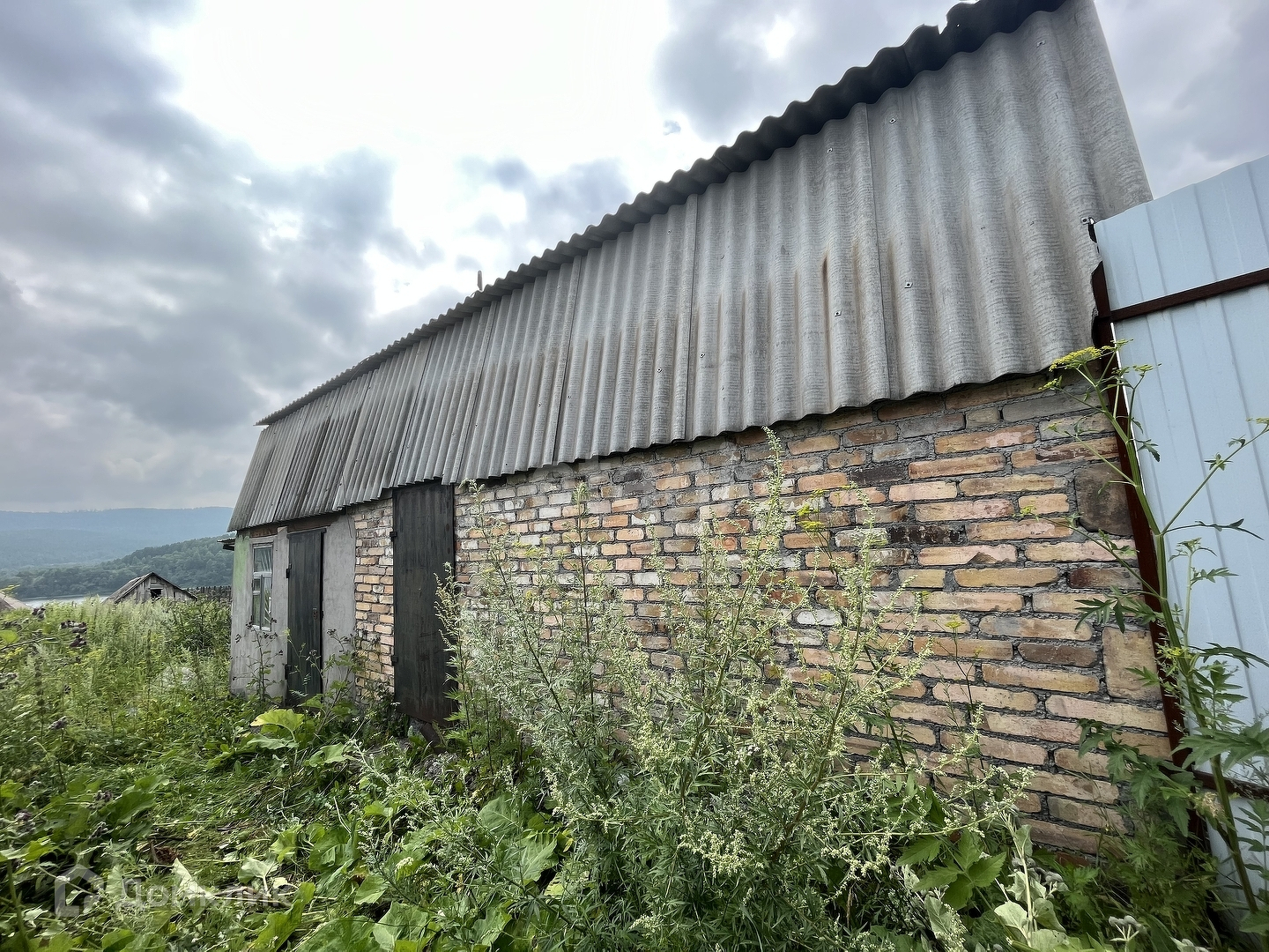 На участке стоит просторный гараж, к гаражу присоединена дополнительная комната, которую можно использовать для проживания. В комнате есть печь.