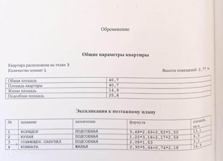 Общая площадь: 40.7 м2